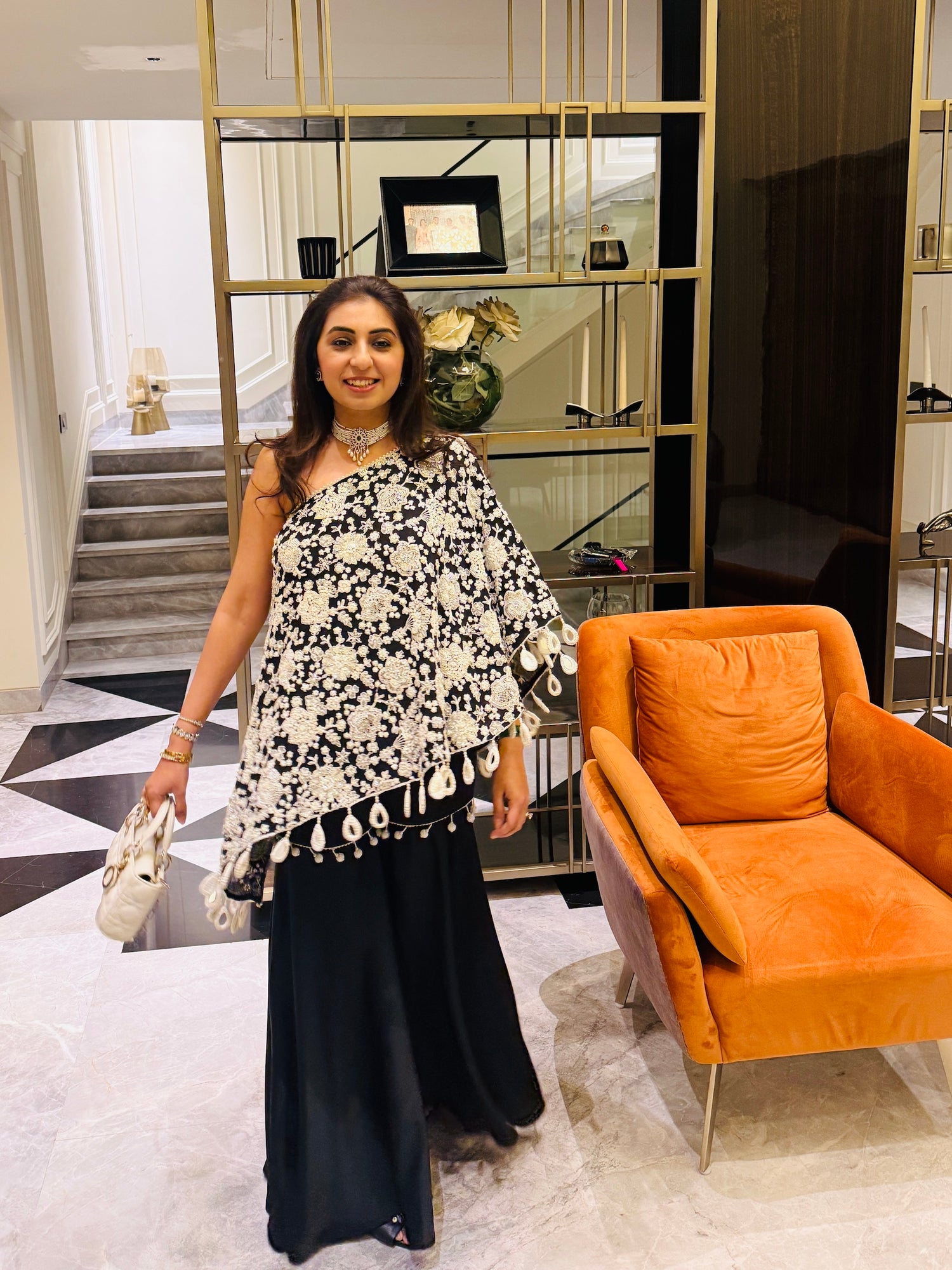 BLACK MULTI COLOR EMBROIDERED CAPE SET