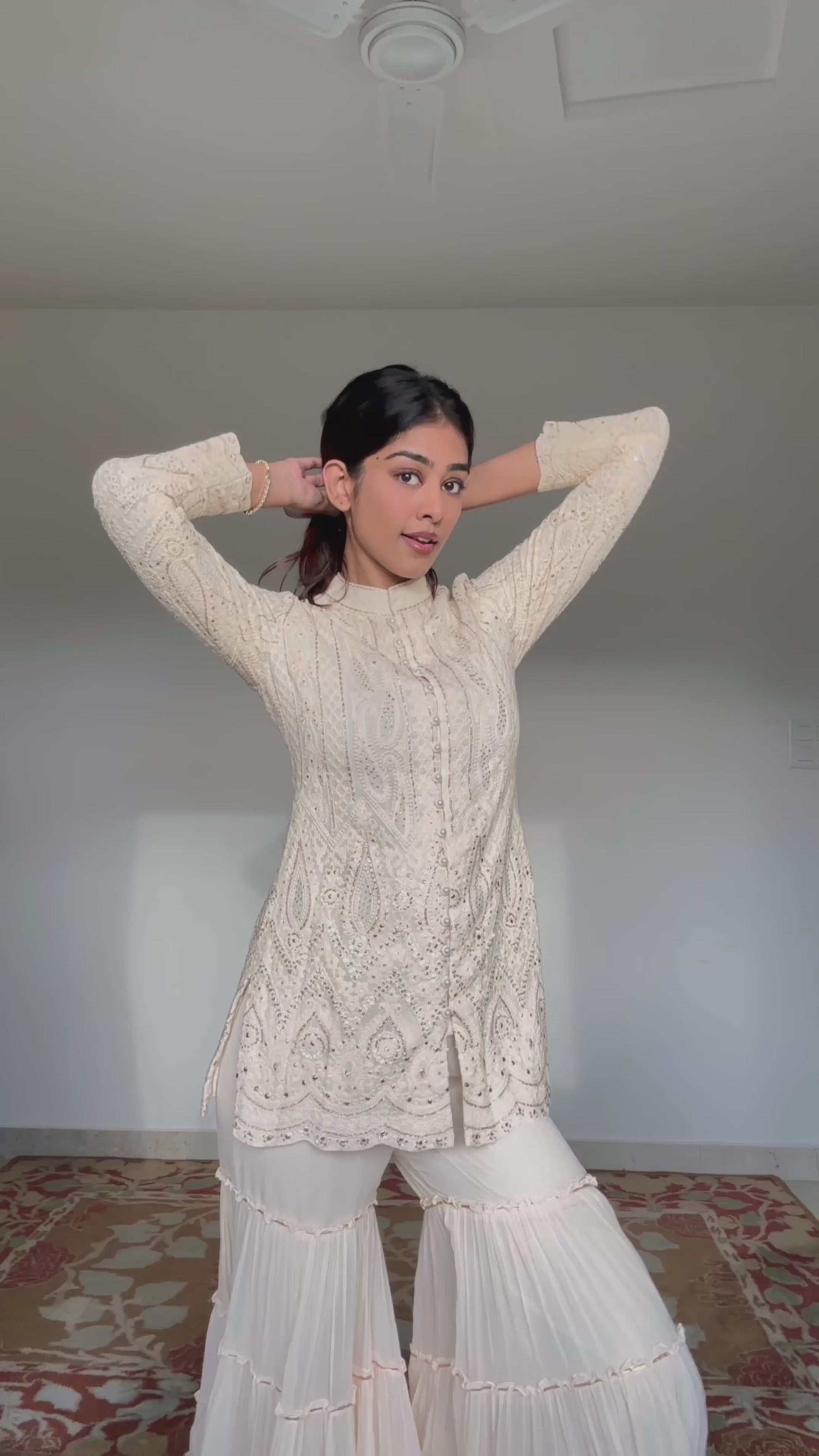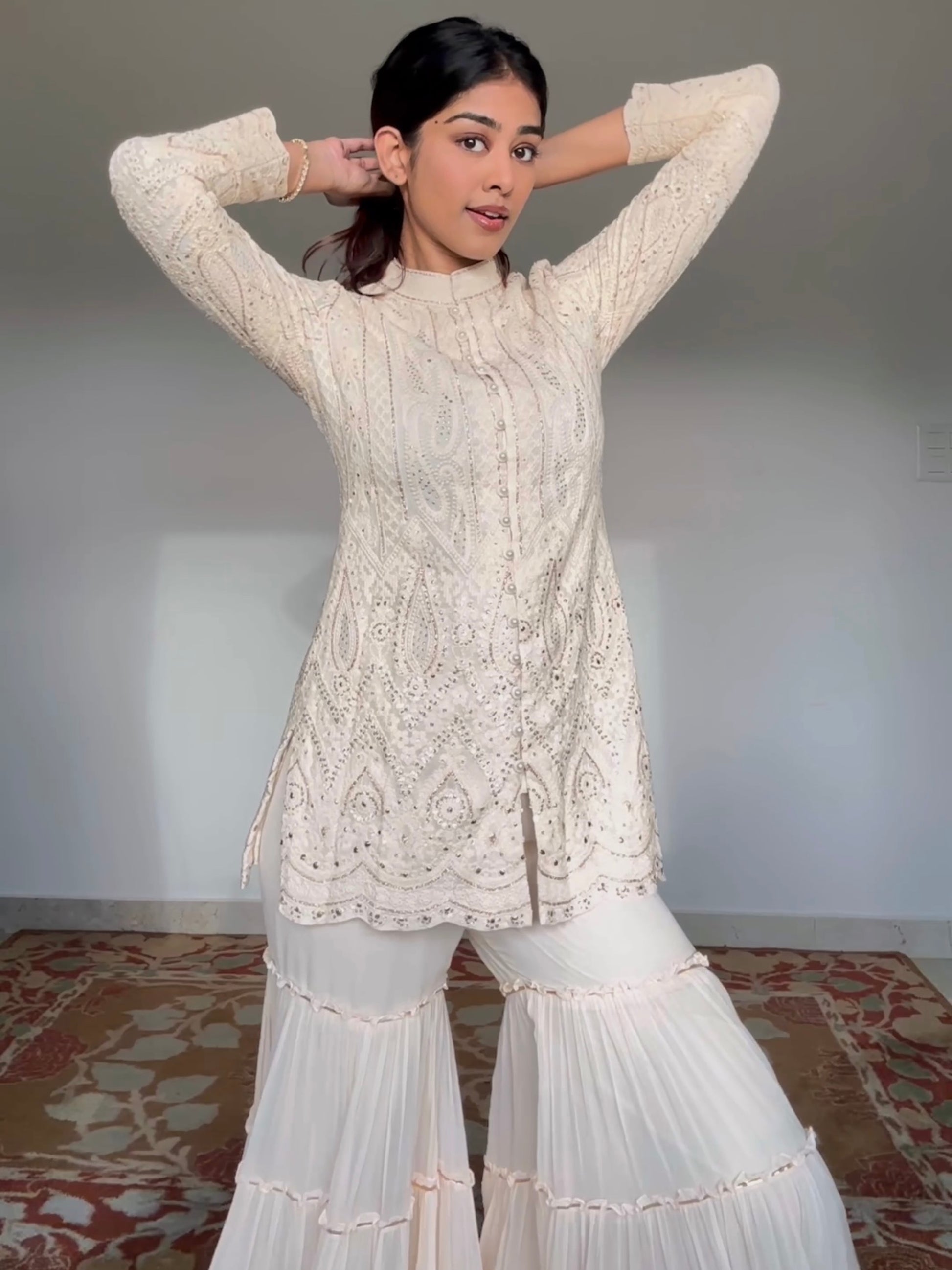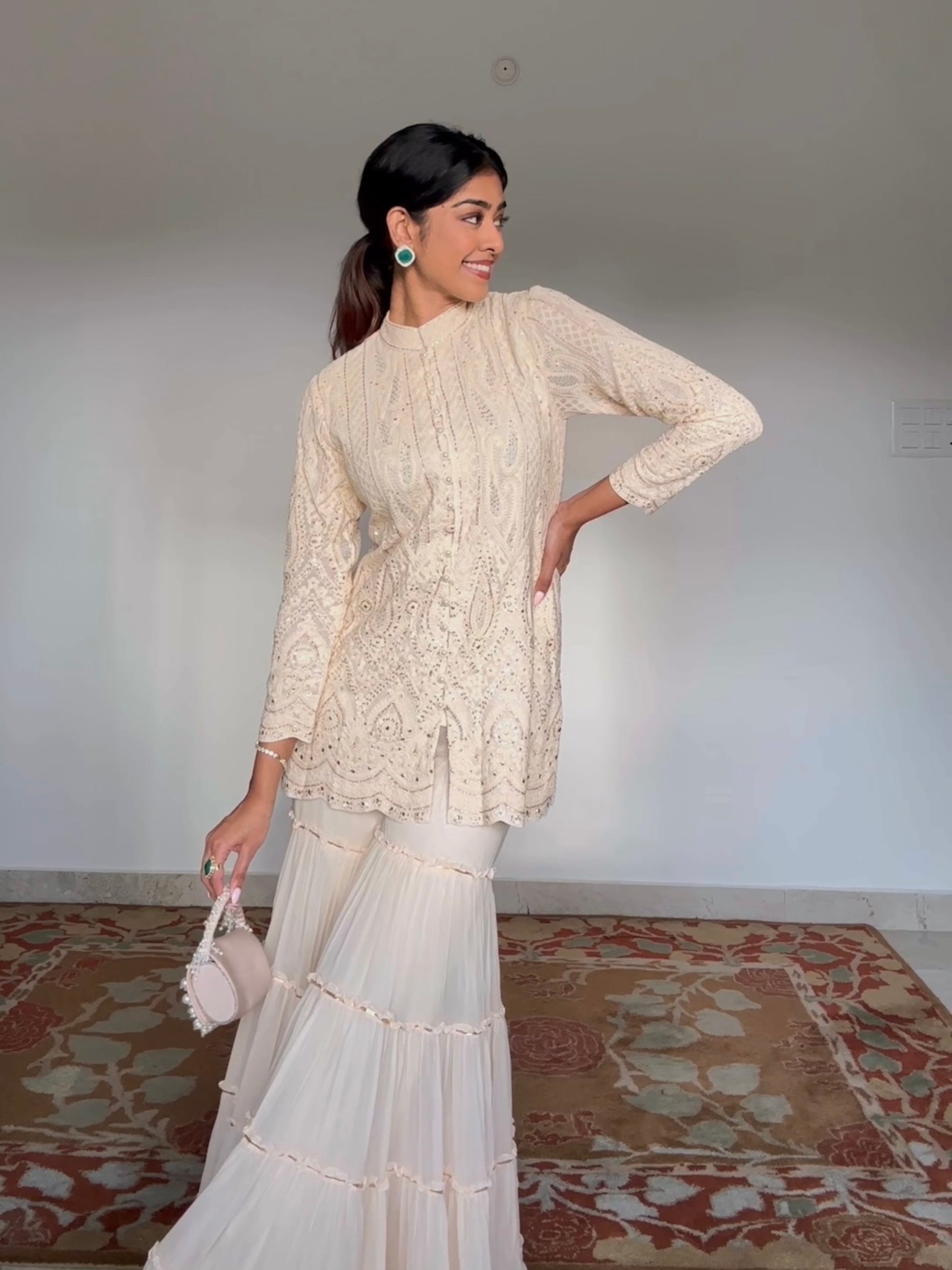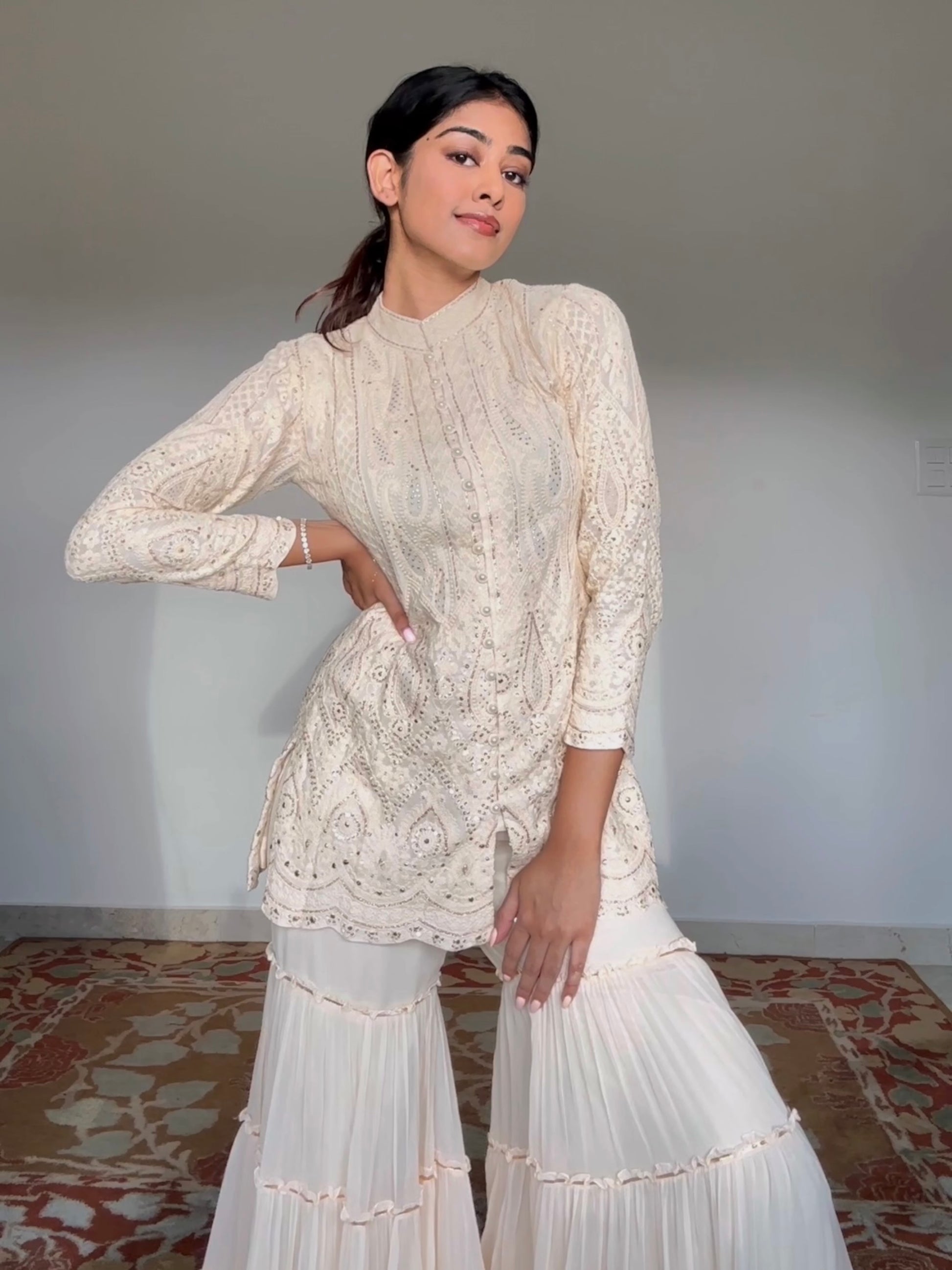 DIVYA BOPPANA IN BEIGE CHIKANKARI FRILL SHARARA SET