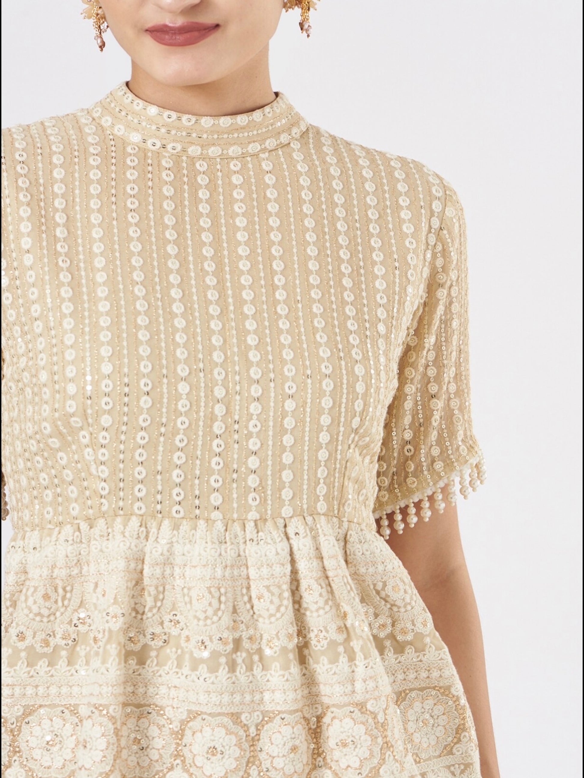 BEIGE CHIKANKARI PEPLUM COORD SET