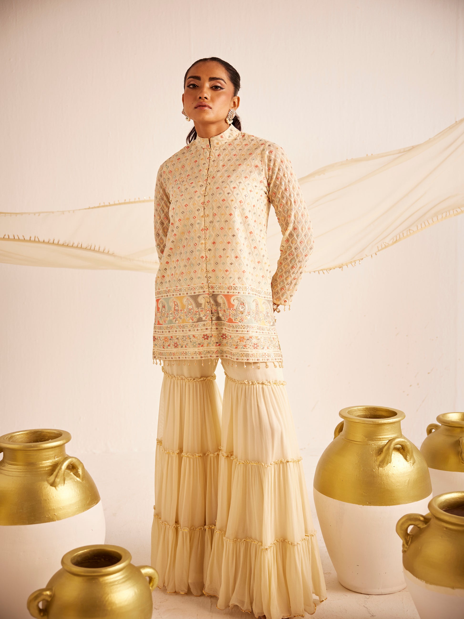 BEIGE MULTI COLOR THREADWORK SHARARA SET