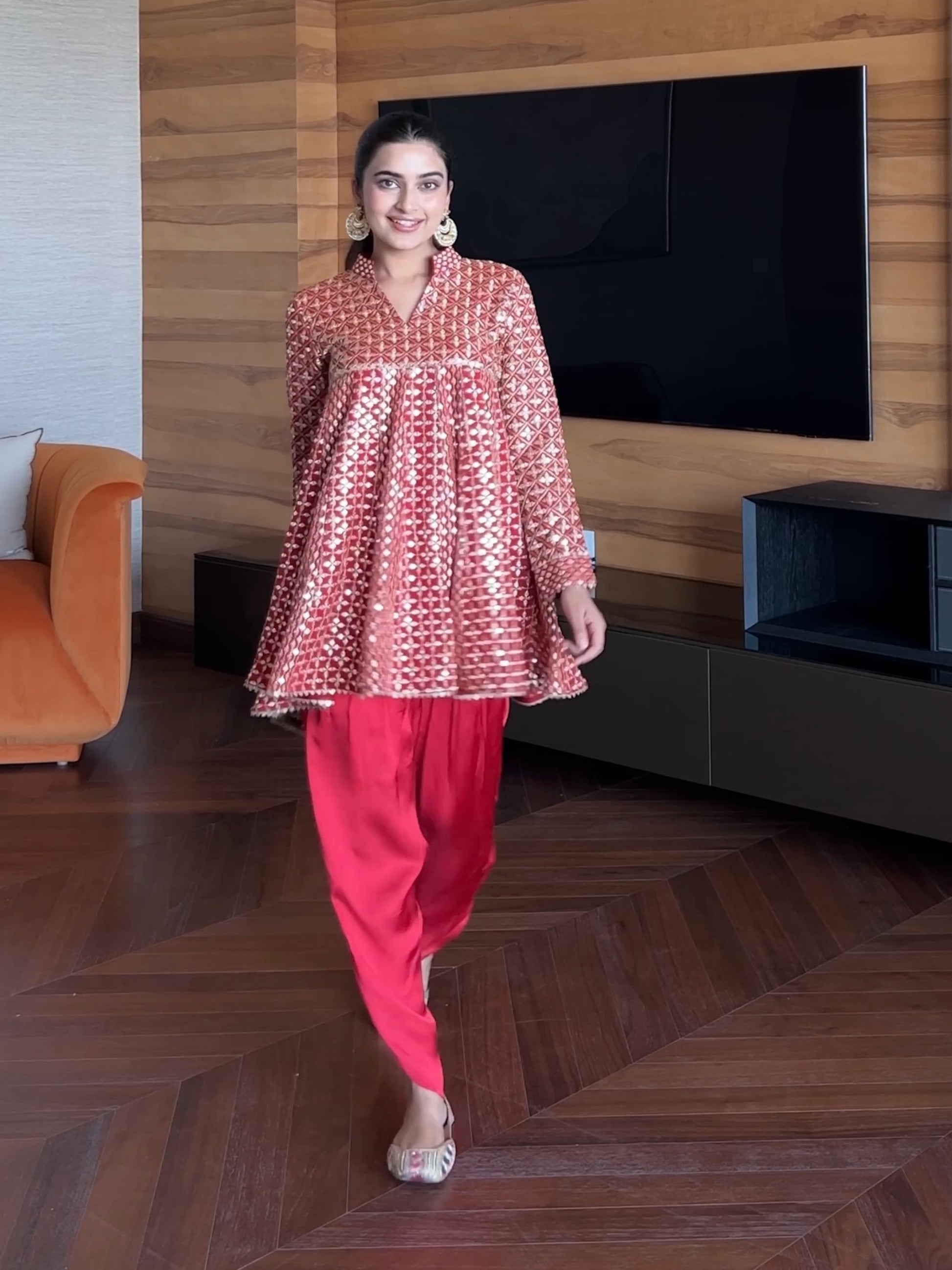 BHAVDEEP KAUR IN RED ZARI & SEQUIN DHOTI SET