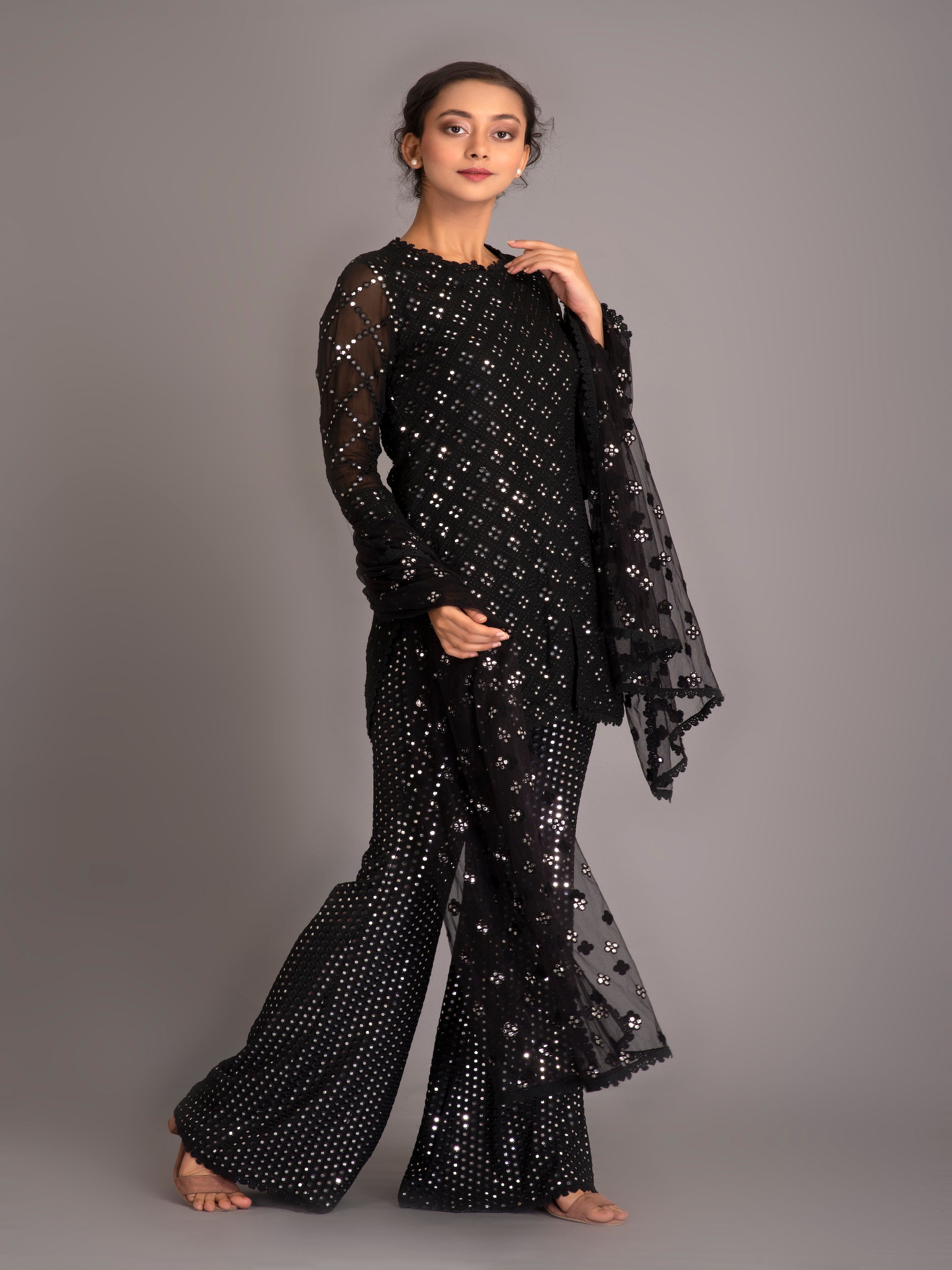 Embroidery : Mirror work machine embroidery
