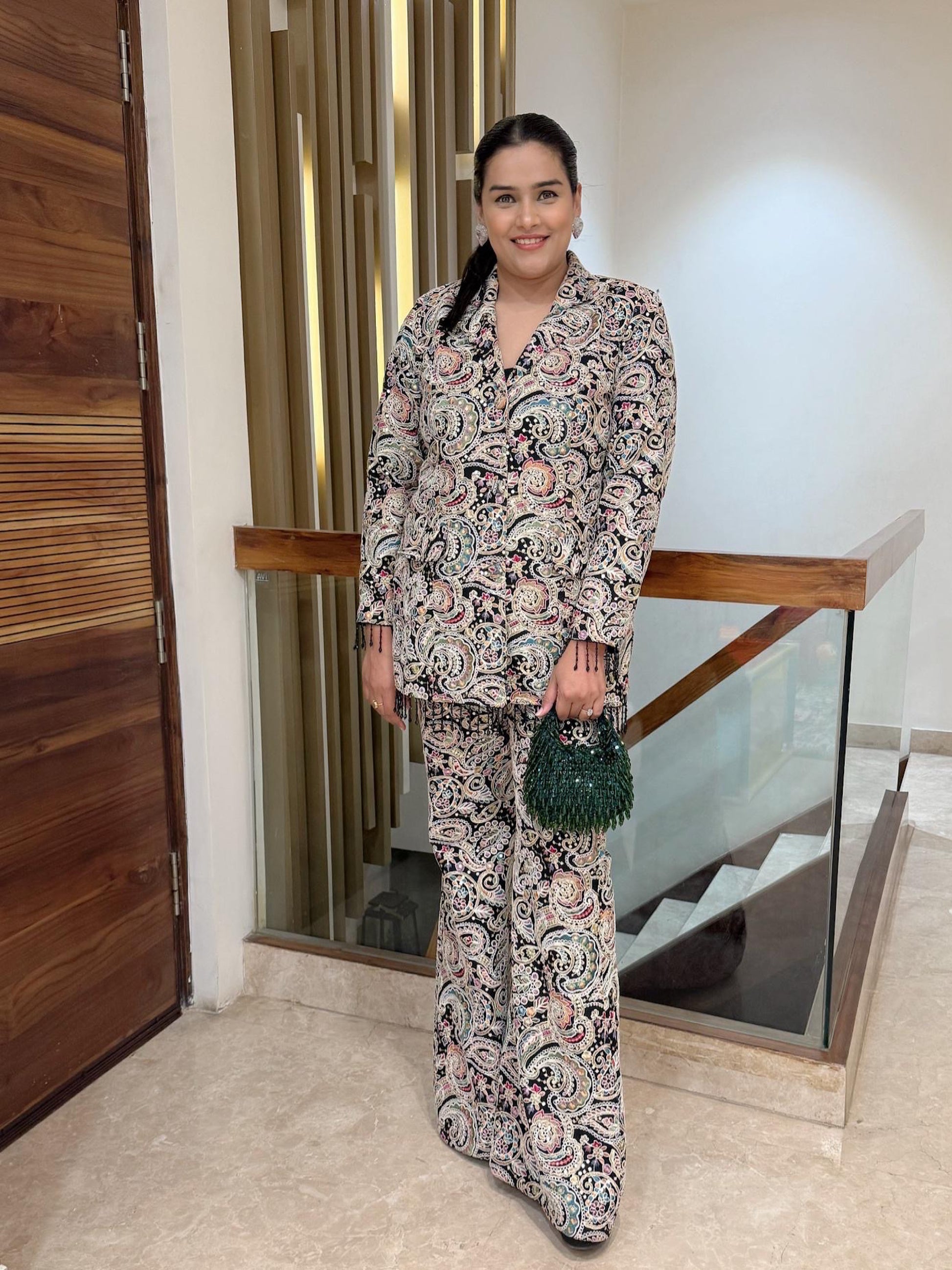 BLACK MULTI COLOR EMBROIDERED BLAZER SET
