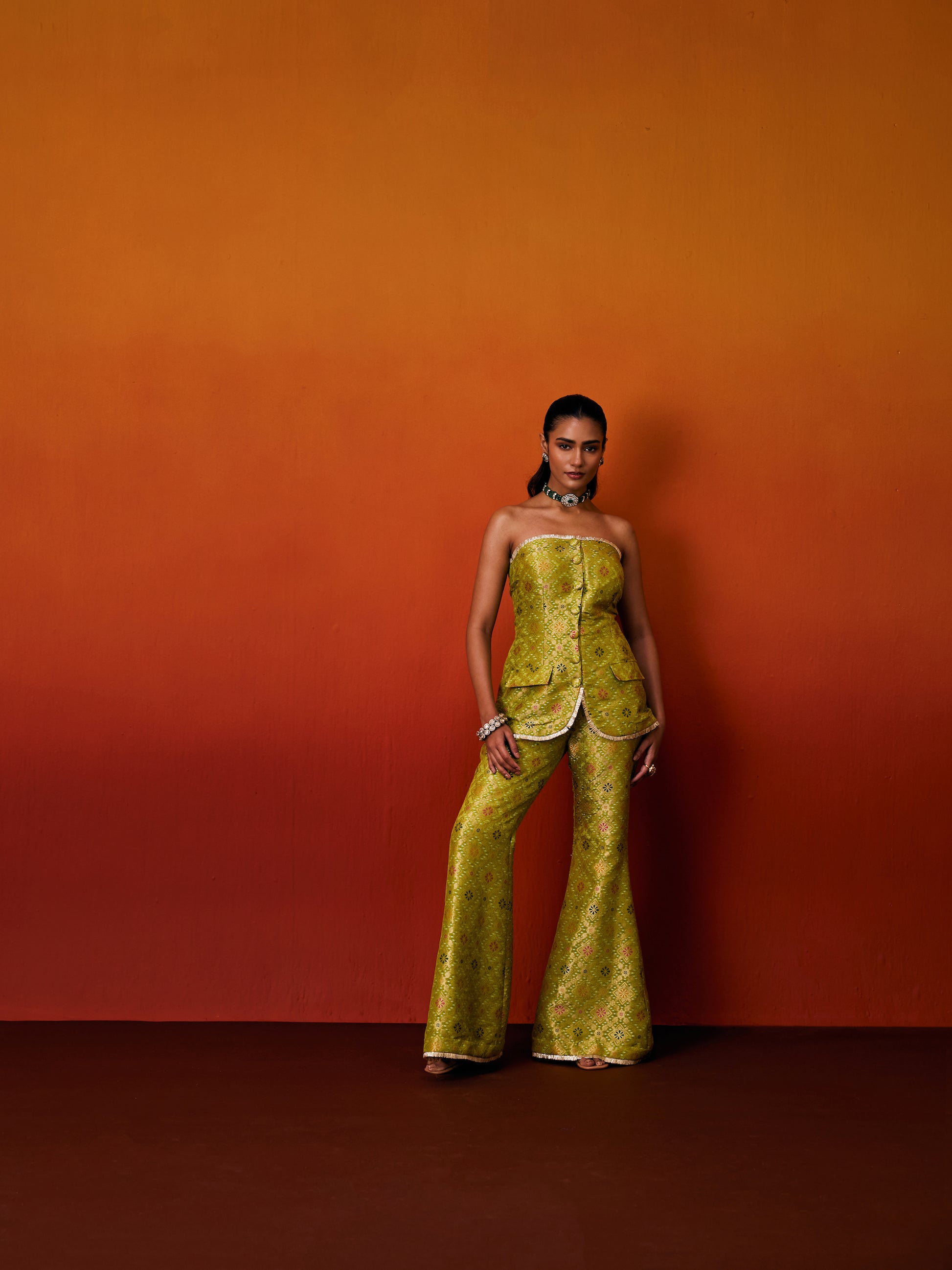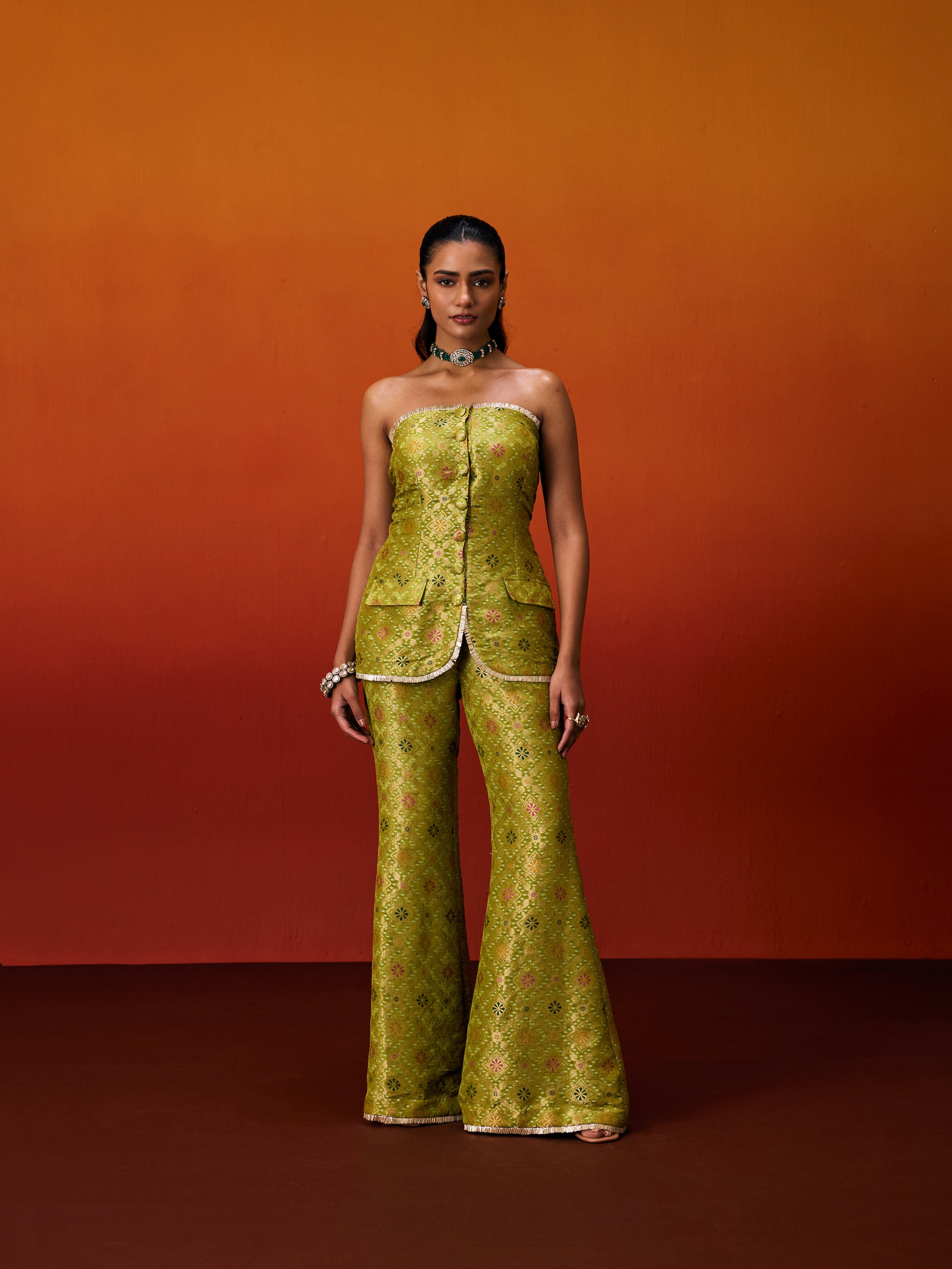 GREEN BROCADE JACKET SET
