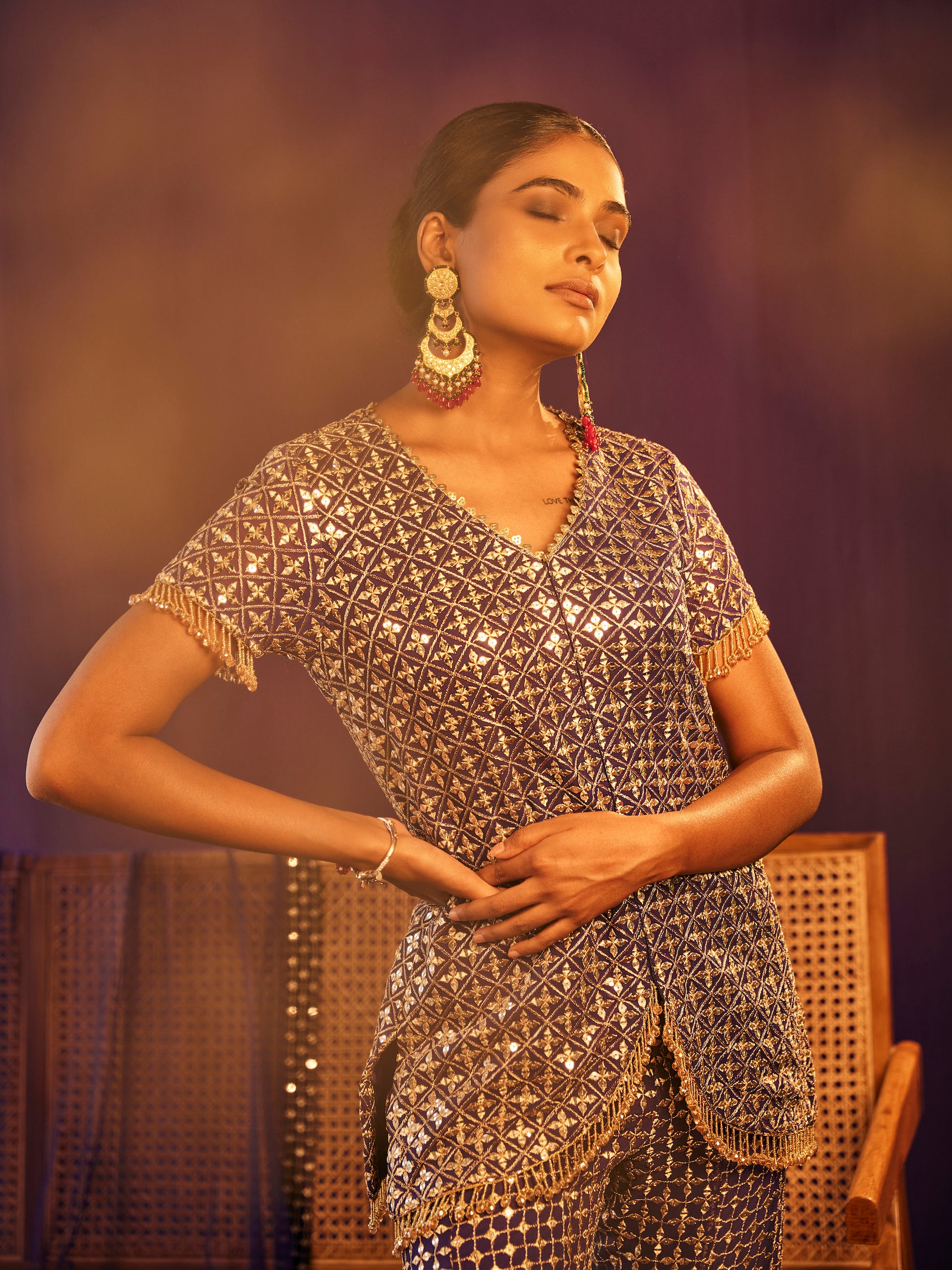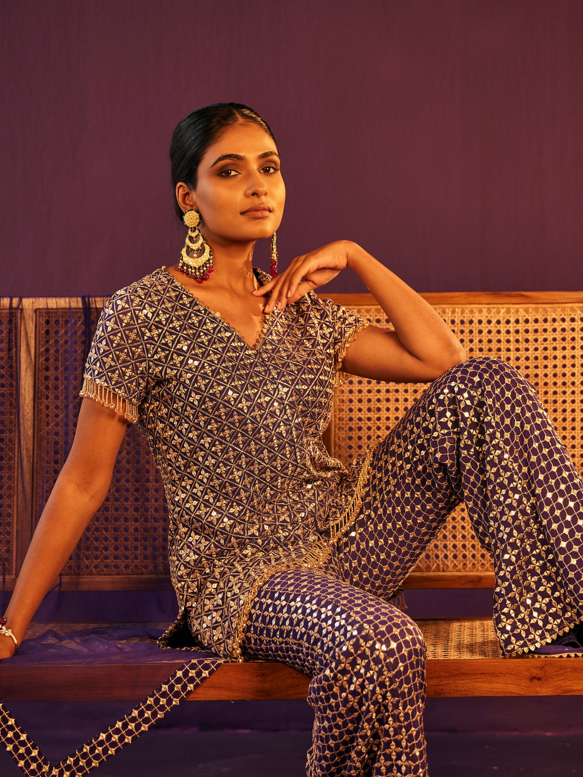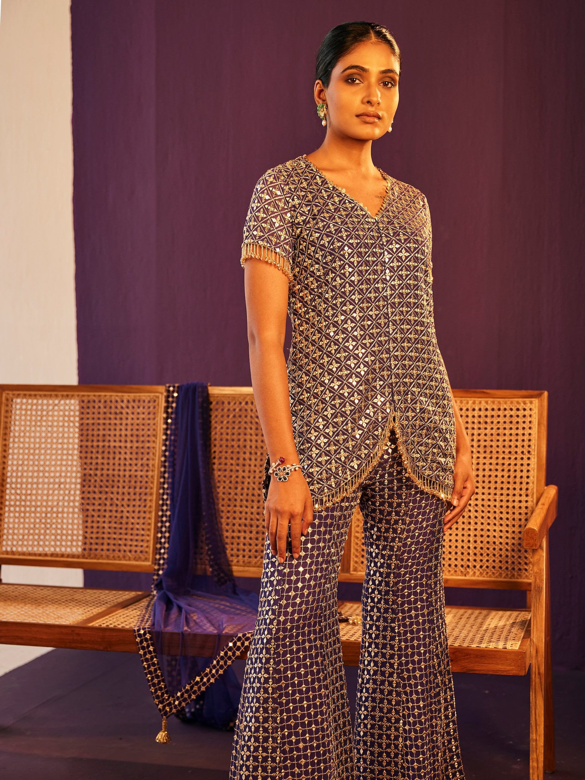 BLUEISH PURPLE ZARI & SEQUIN COORD SET