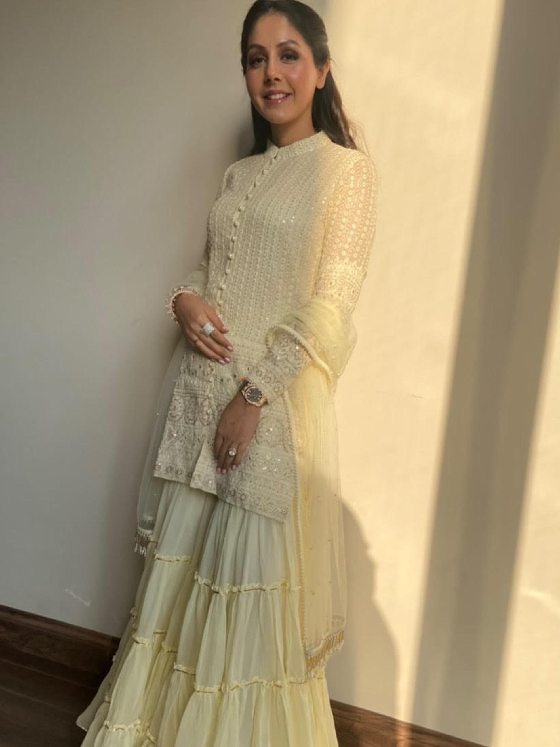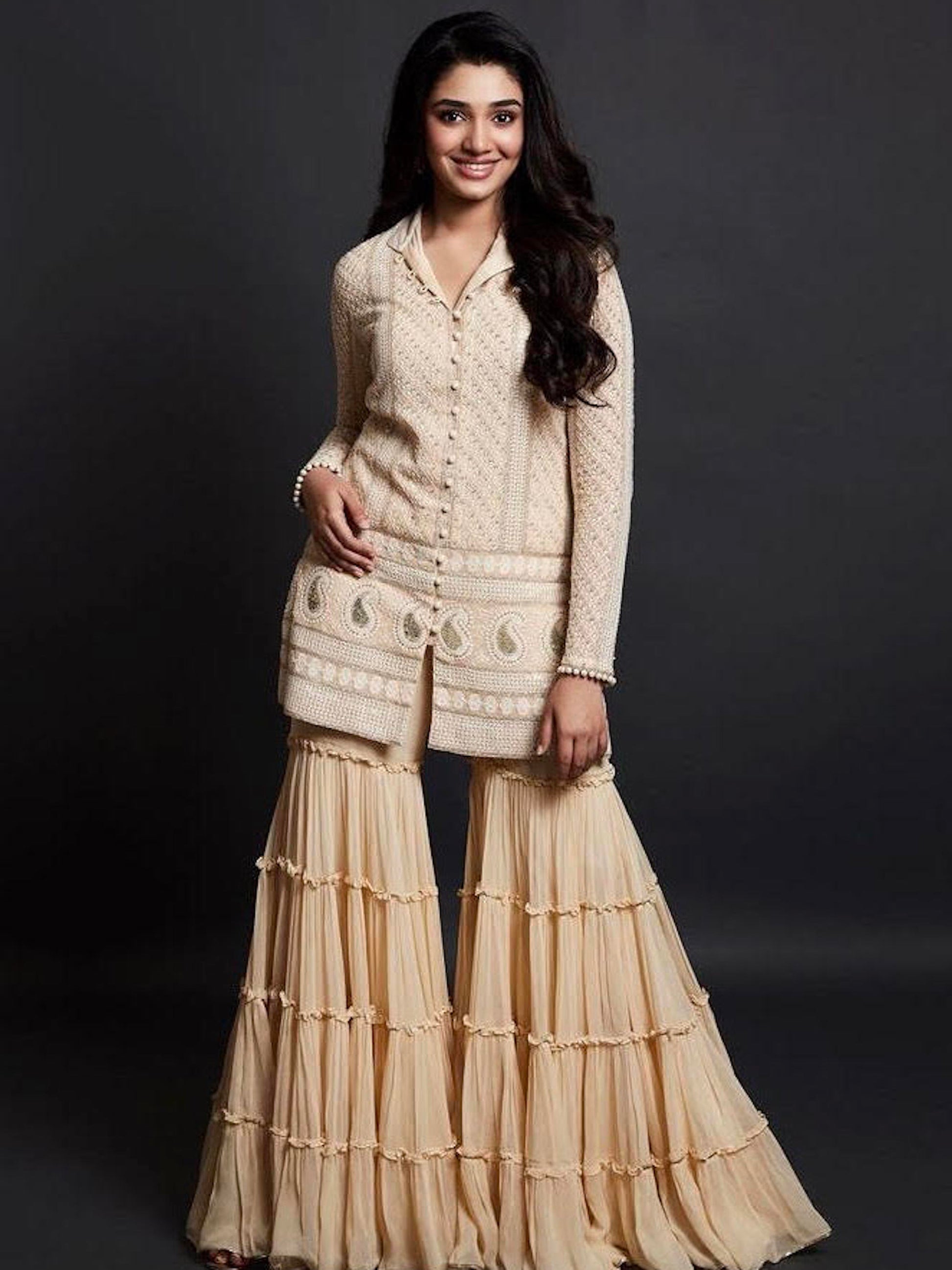 CHIKANKARI FRILL SHARARA SET