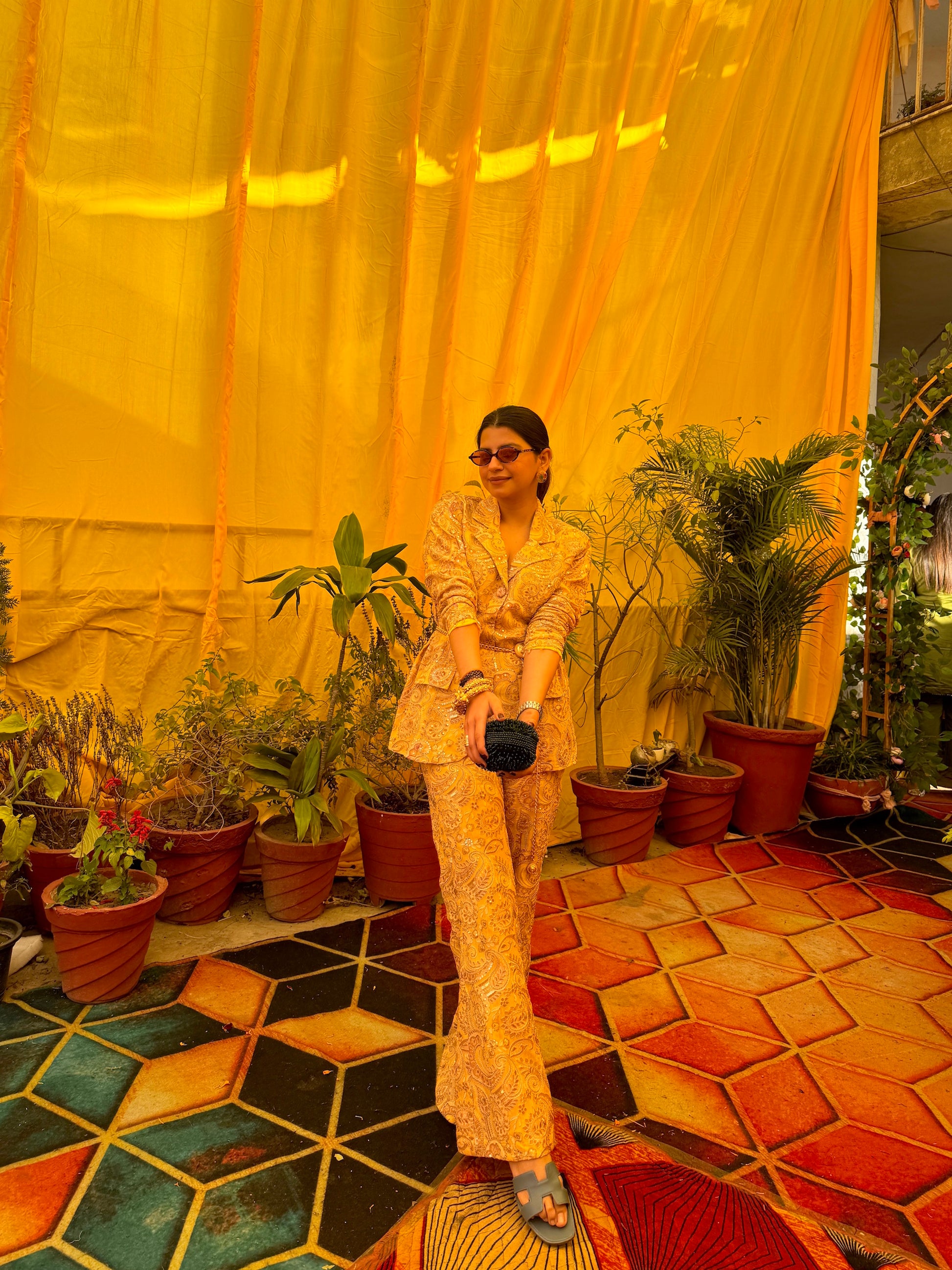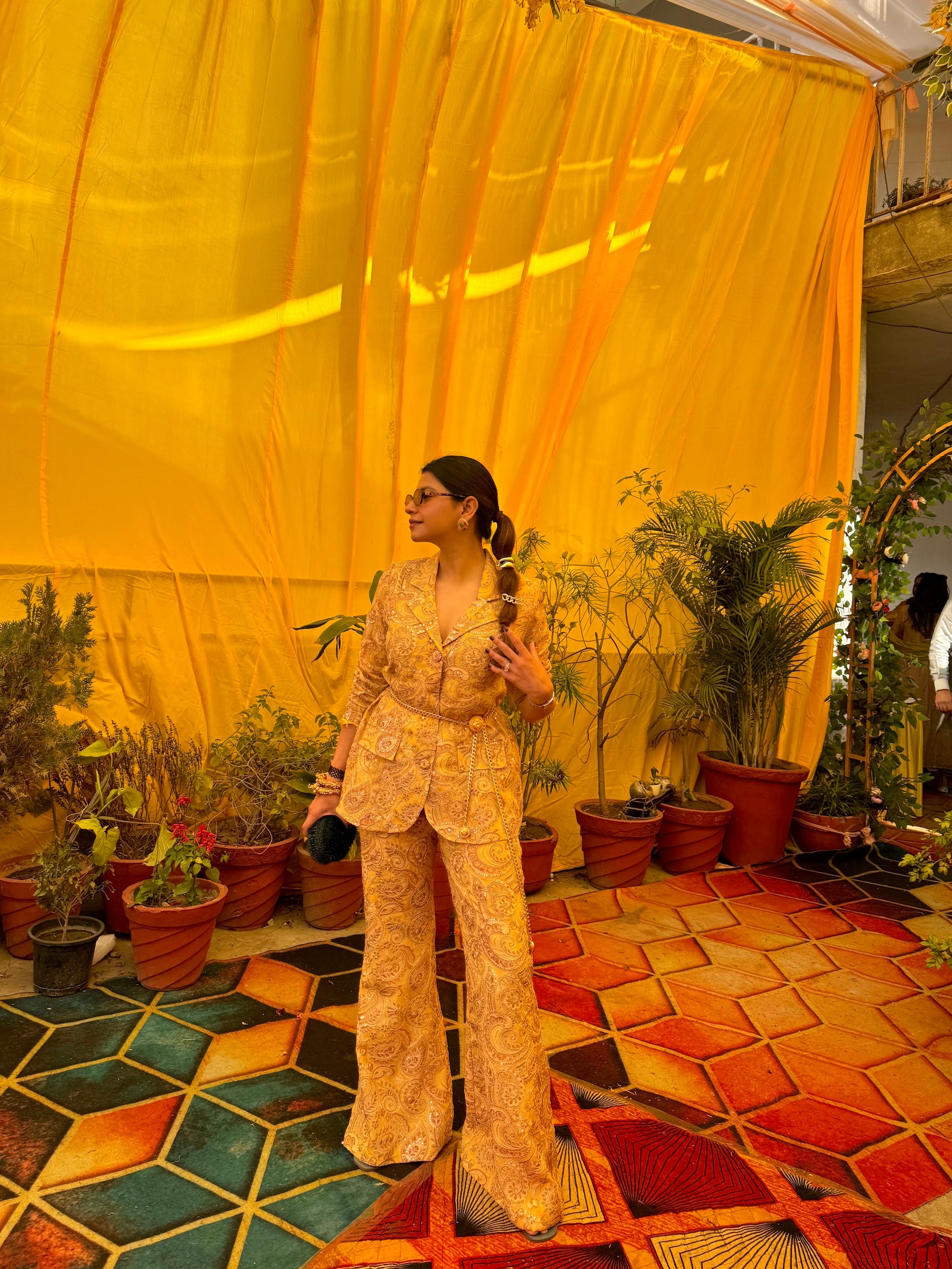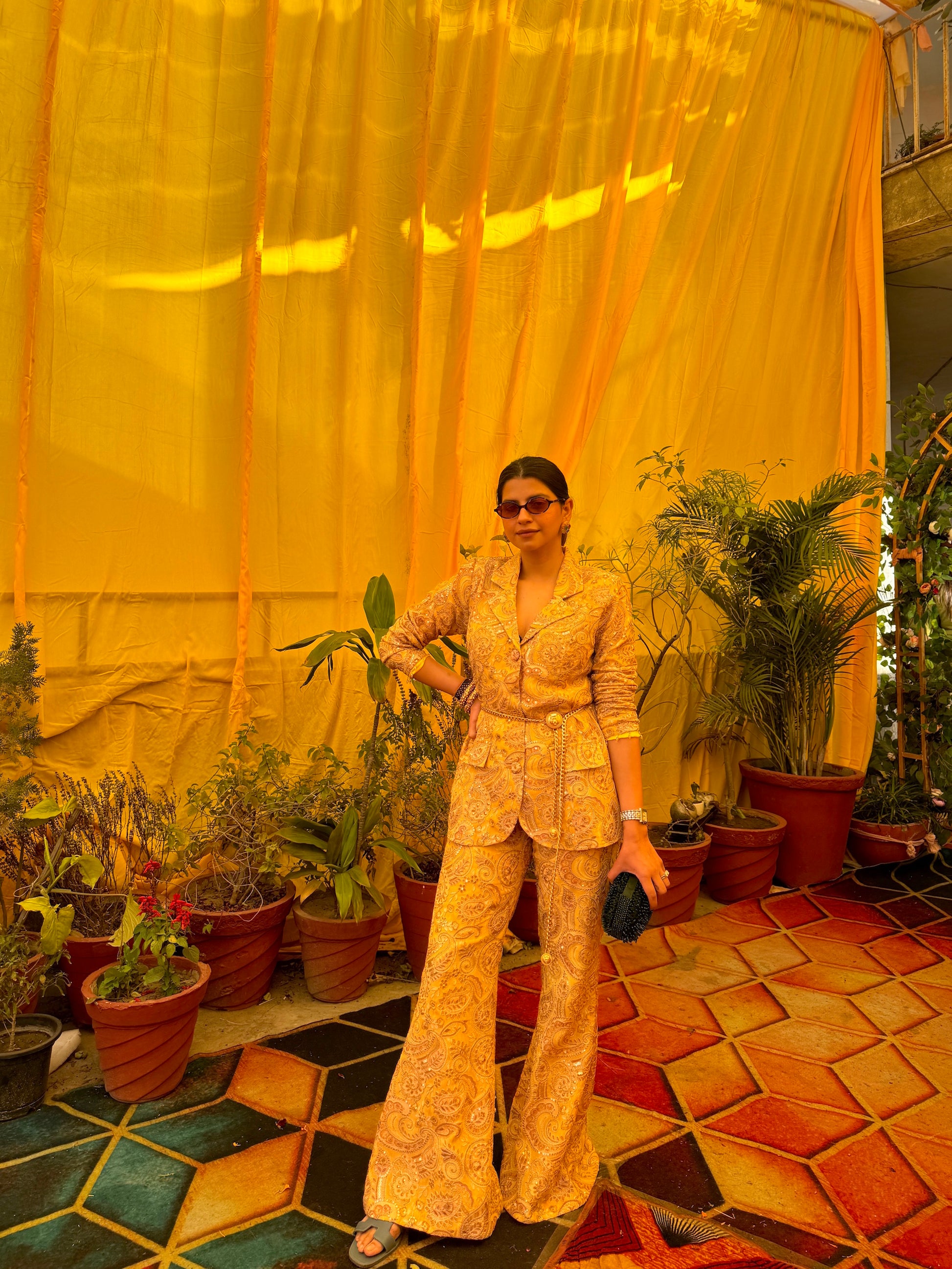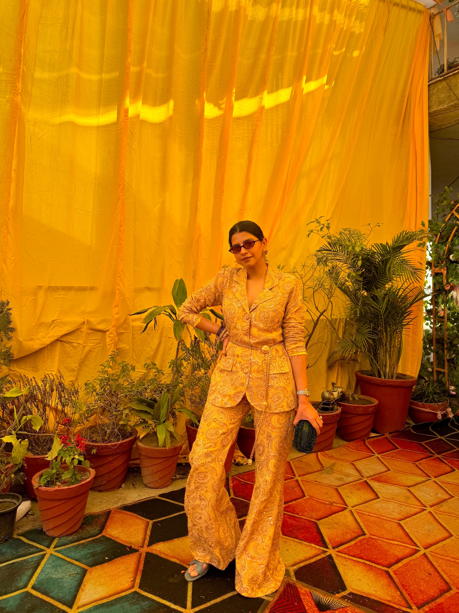DHRITI MEHRA IN YELLOW MULTI COLOR EMBROIDERED BLAZER SET