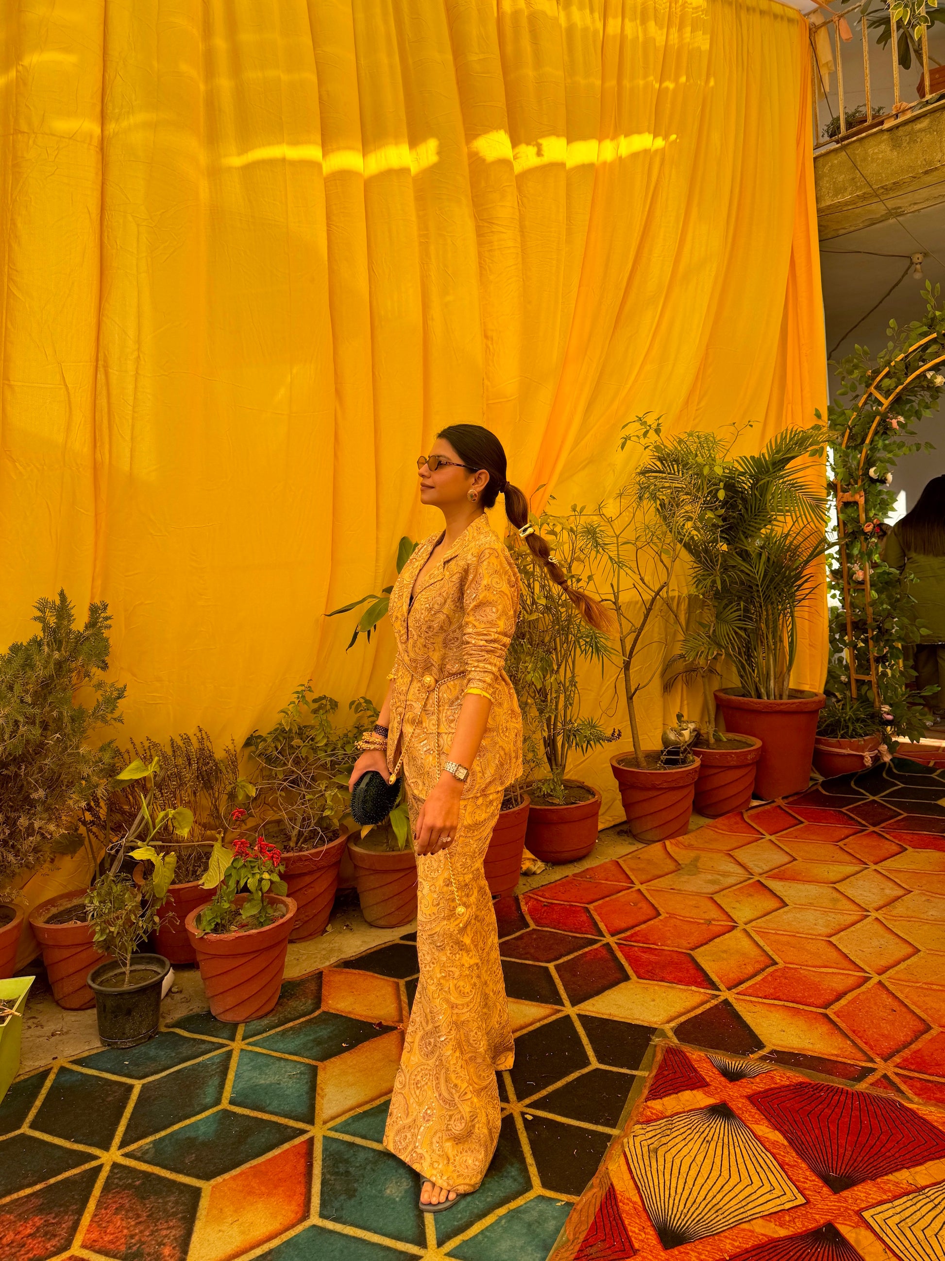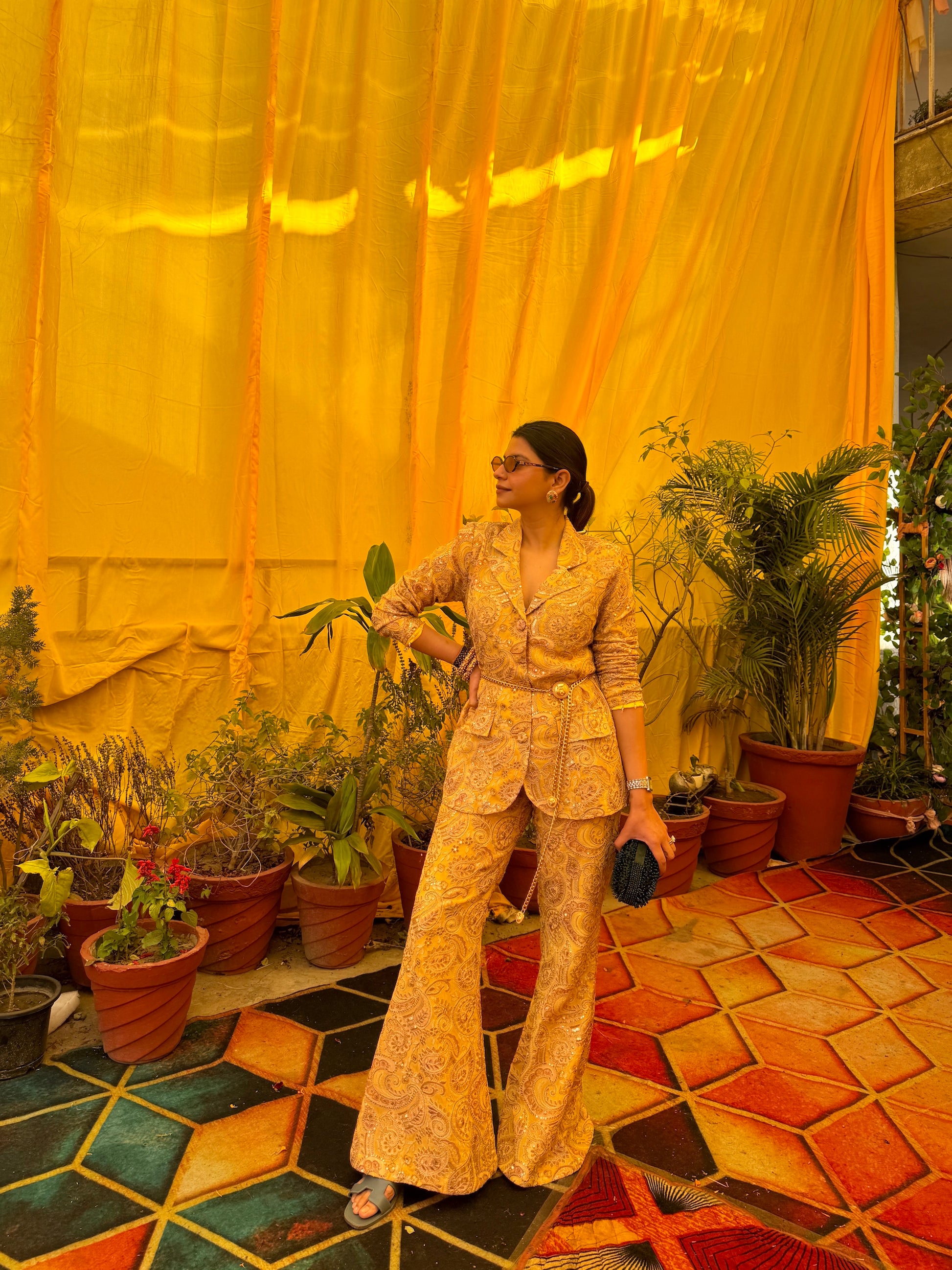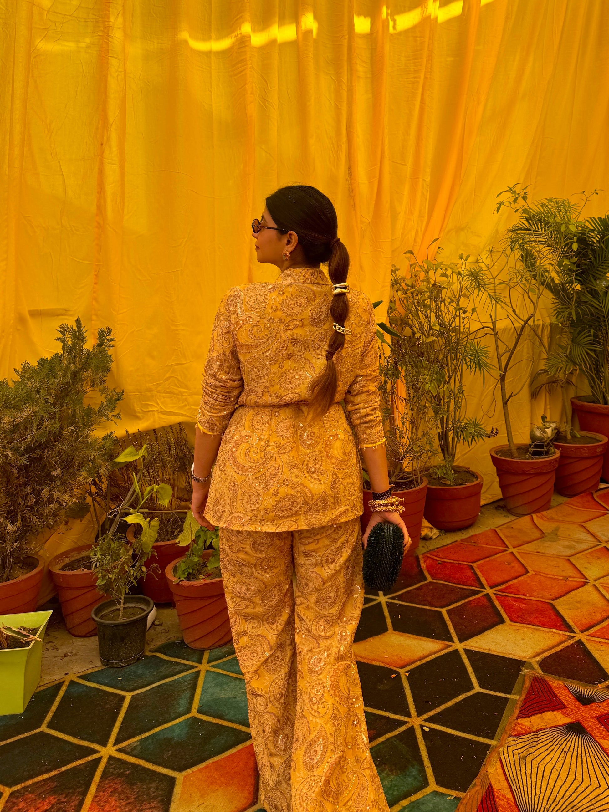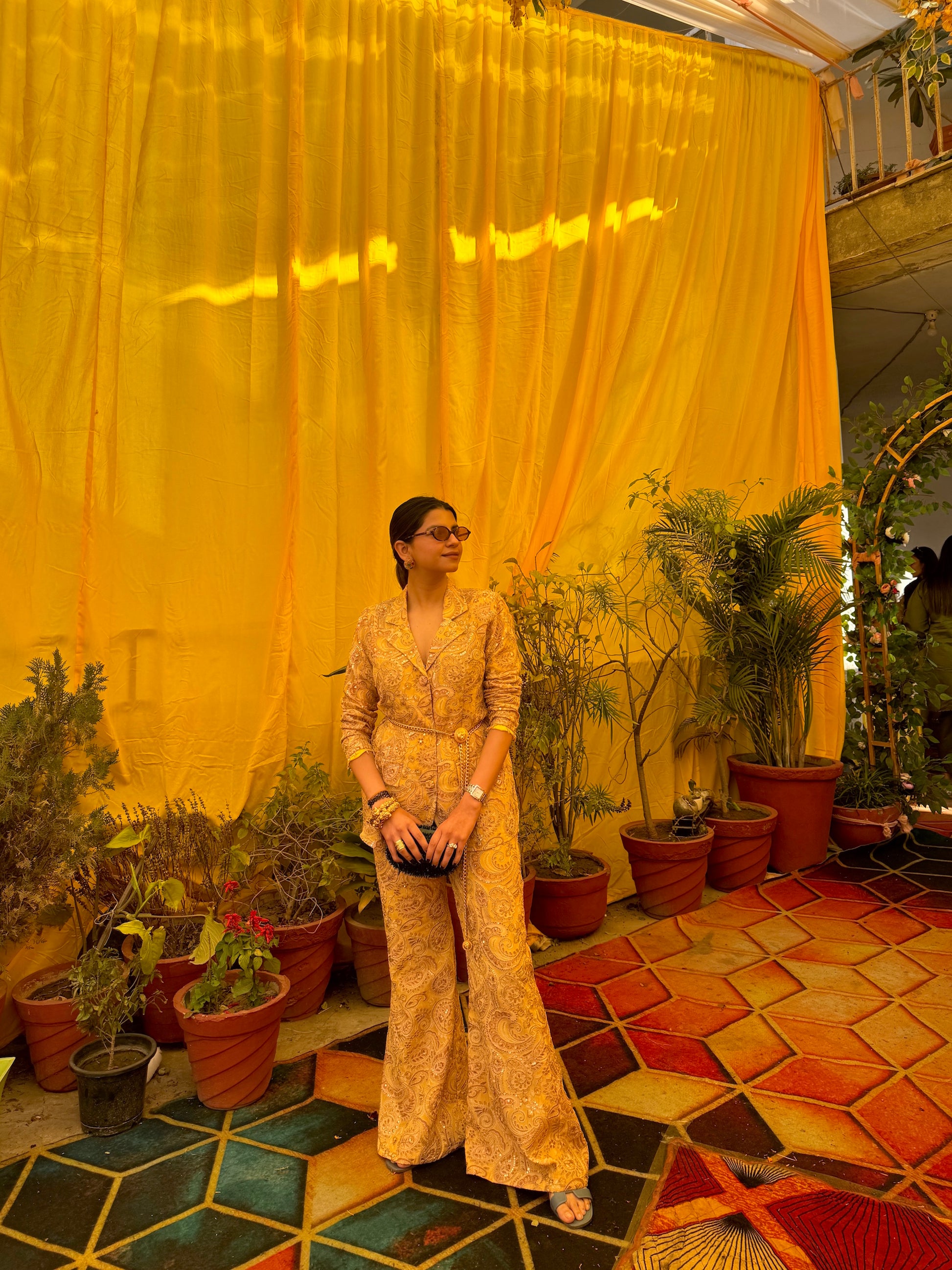 DHRITI MEHRA IN YELLOW MULTI COLOR EMBROIDERED BLAZER SET