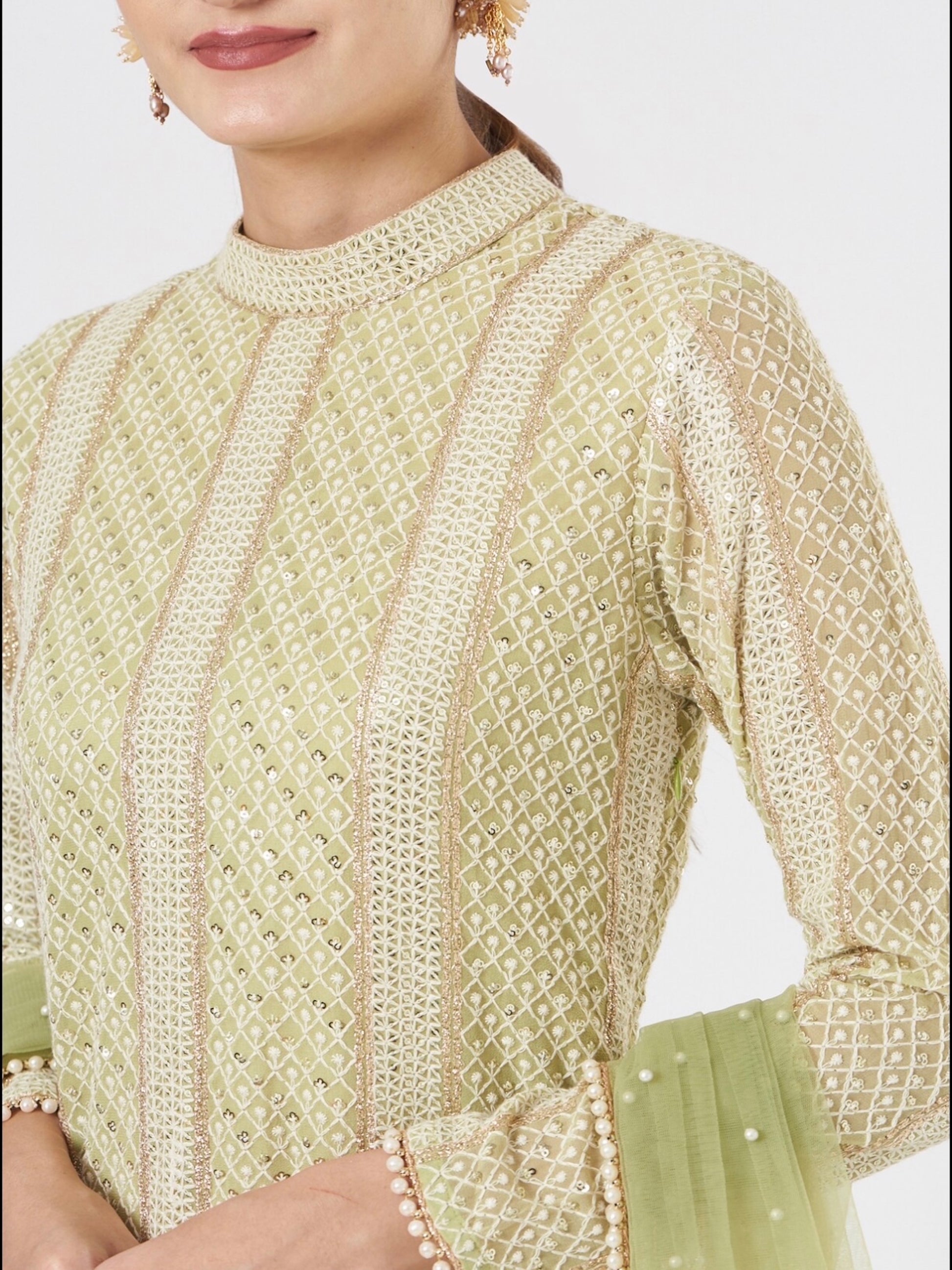GREEN CHIKANKARI GARARA SET