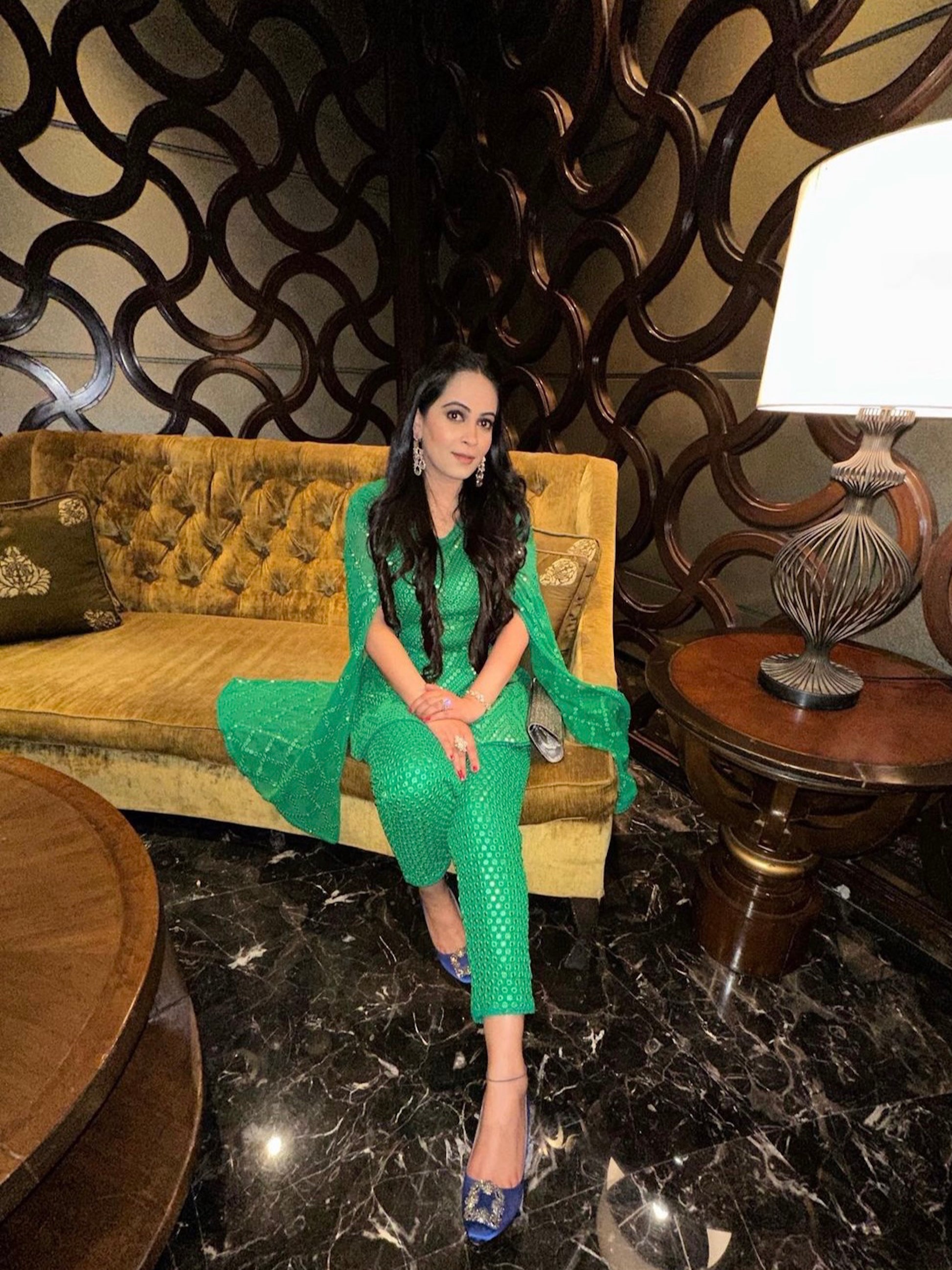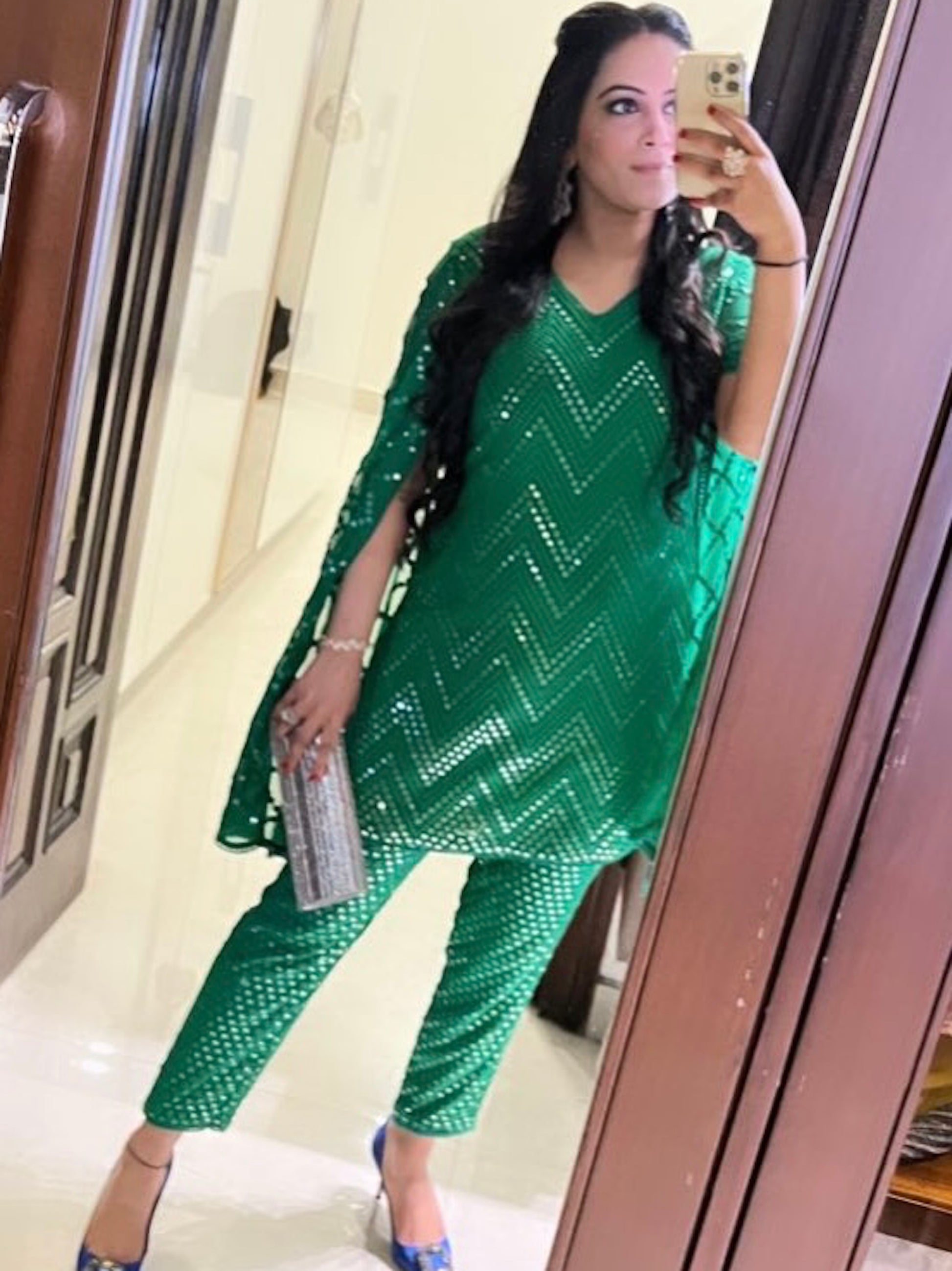 SHRADHA AJMANI IN GREEN MIRROR WORK COORD SET