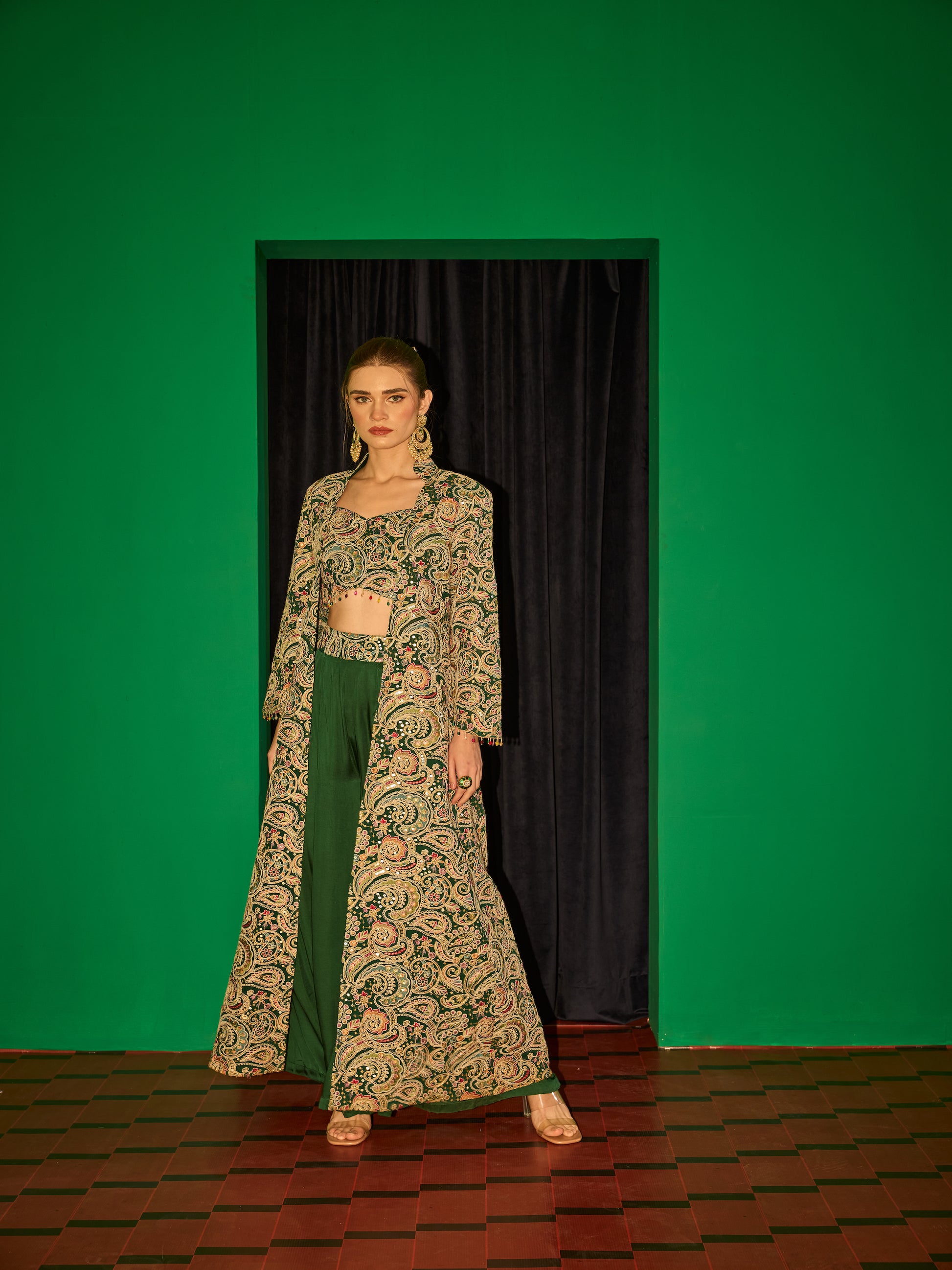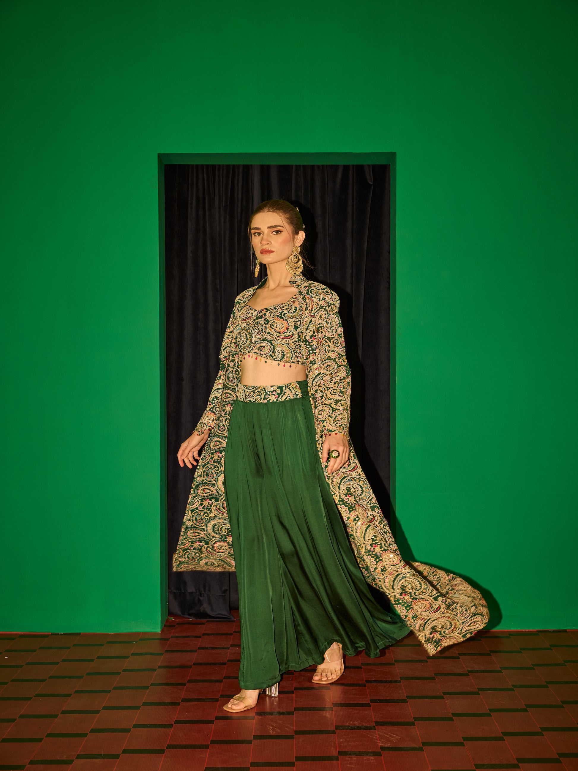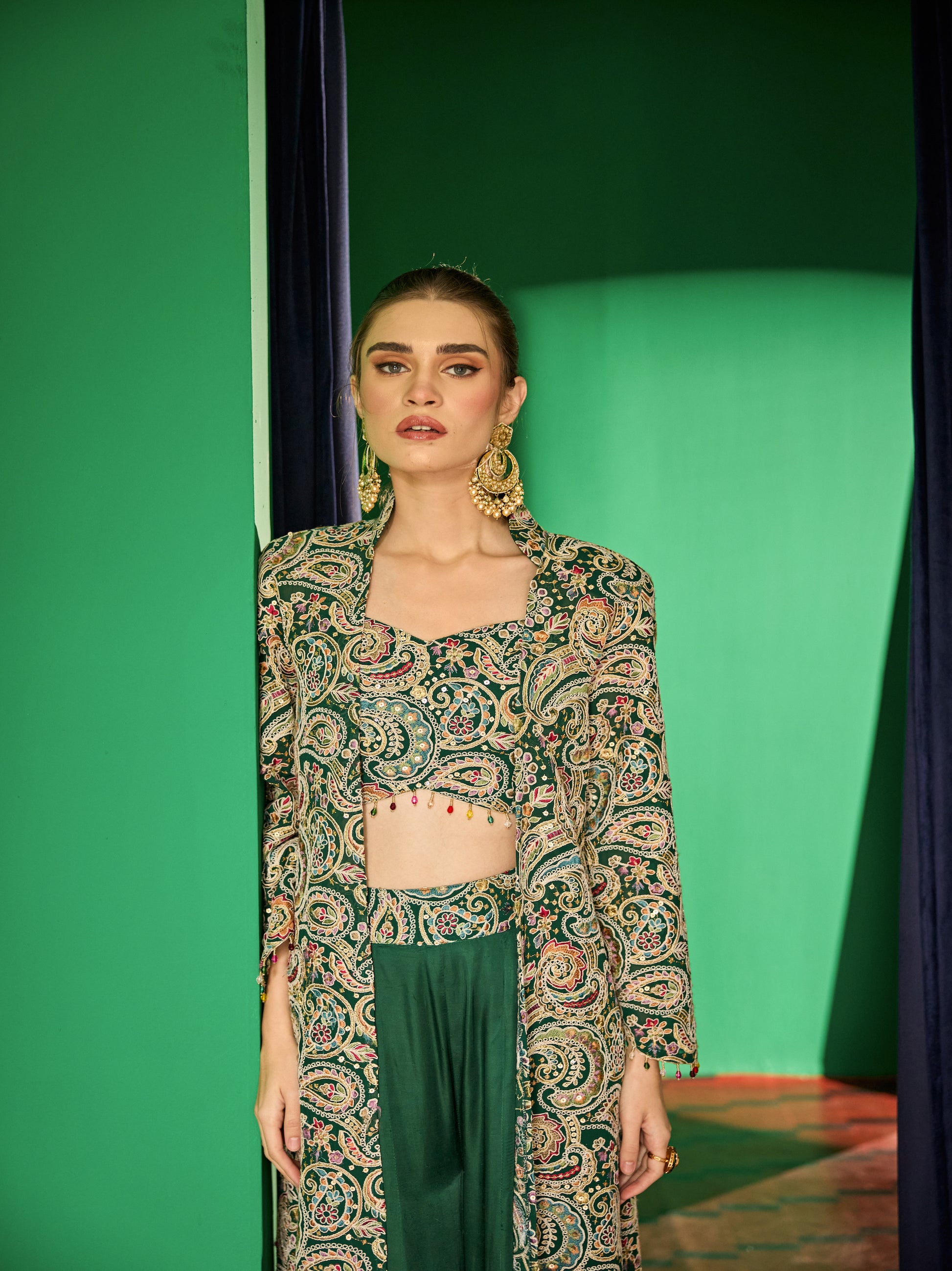 GREEN MULTI COLOR EMBROIDERED 3 PIECE SET