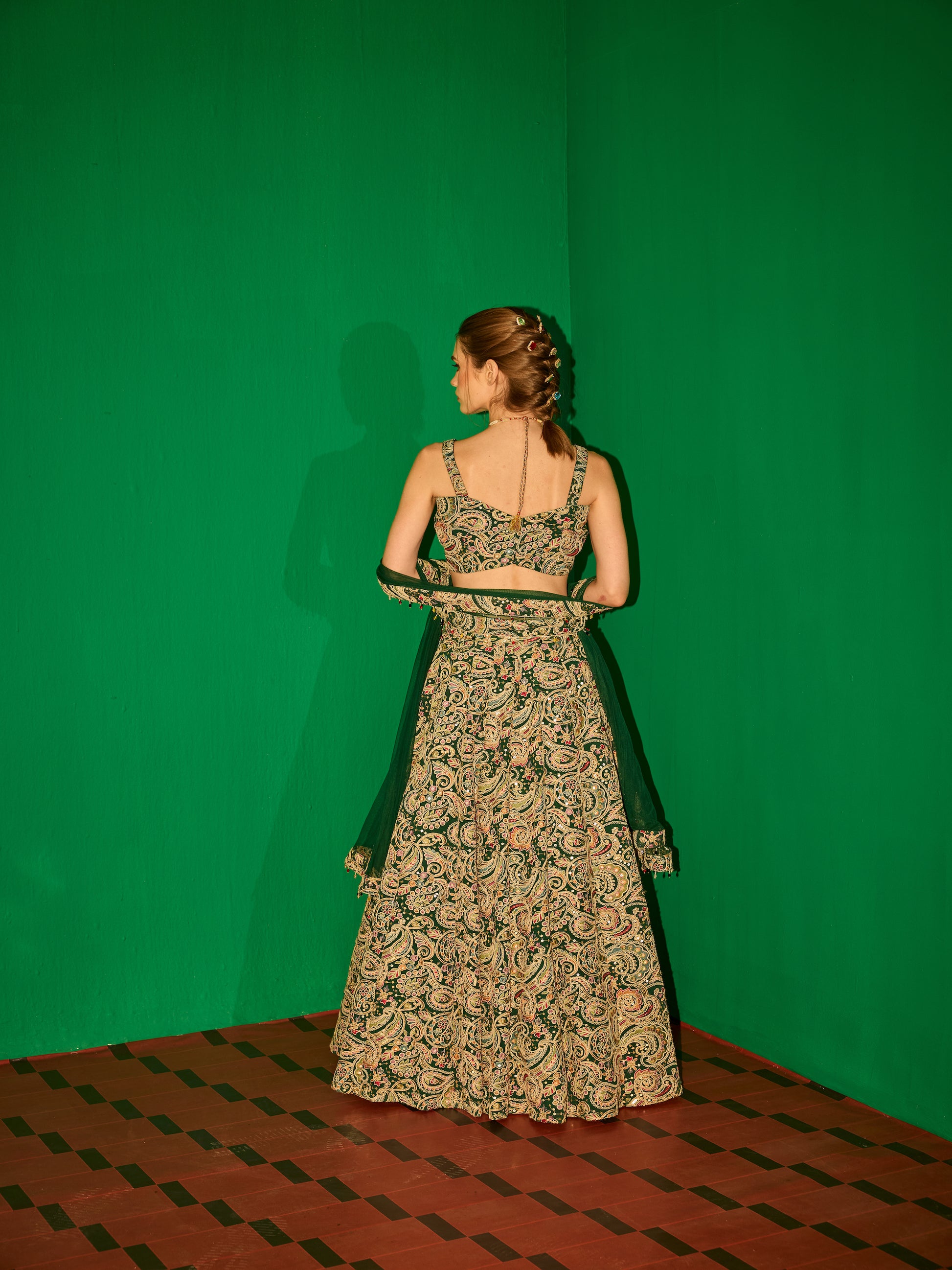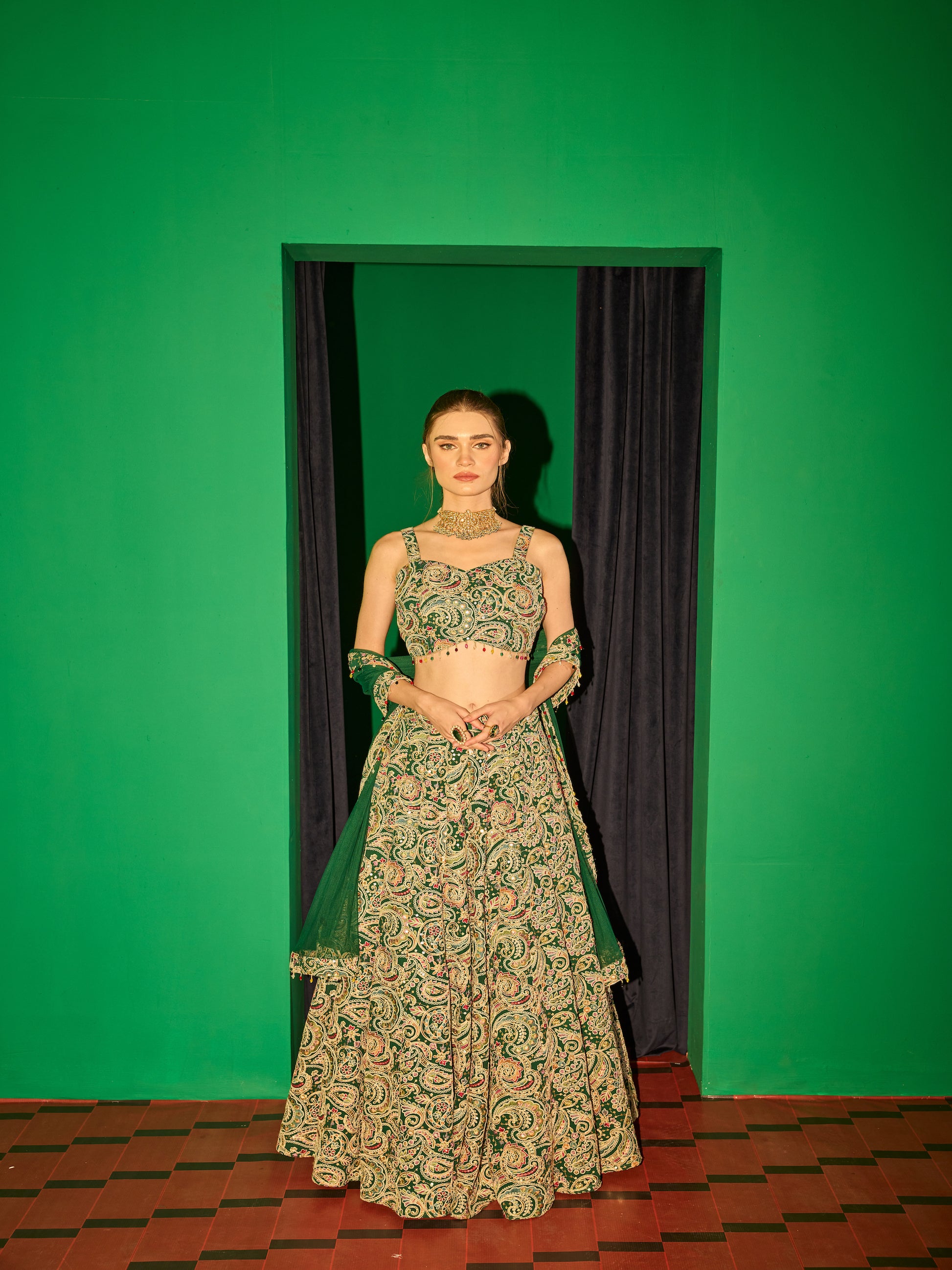 GREEN MULTI COLOR EMBROIDERED LEHENGA SET