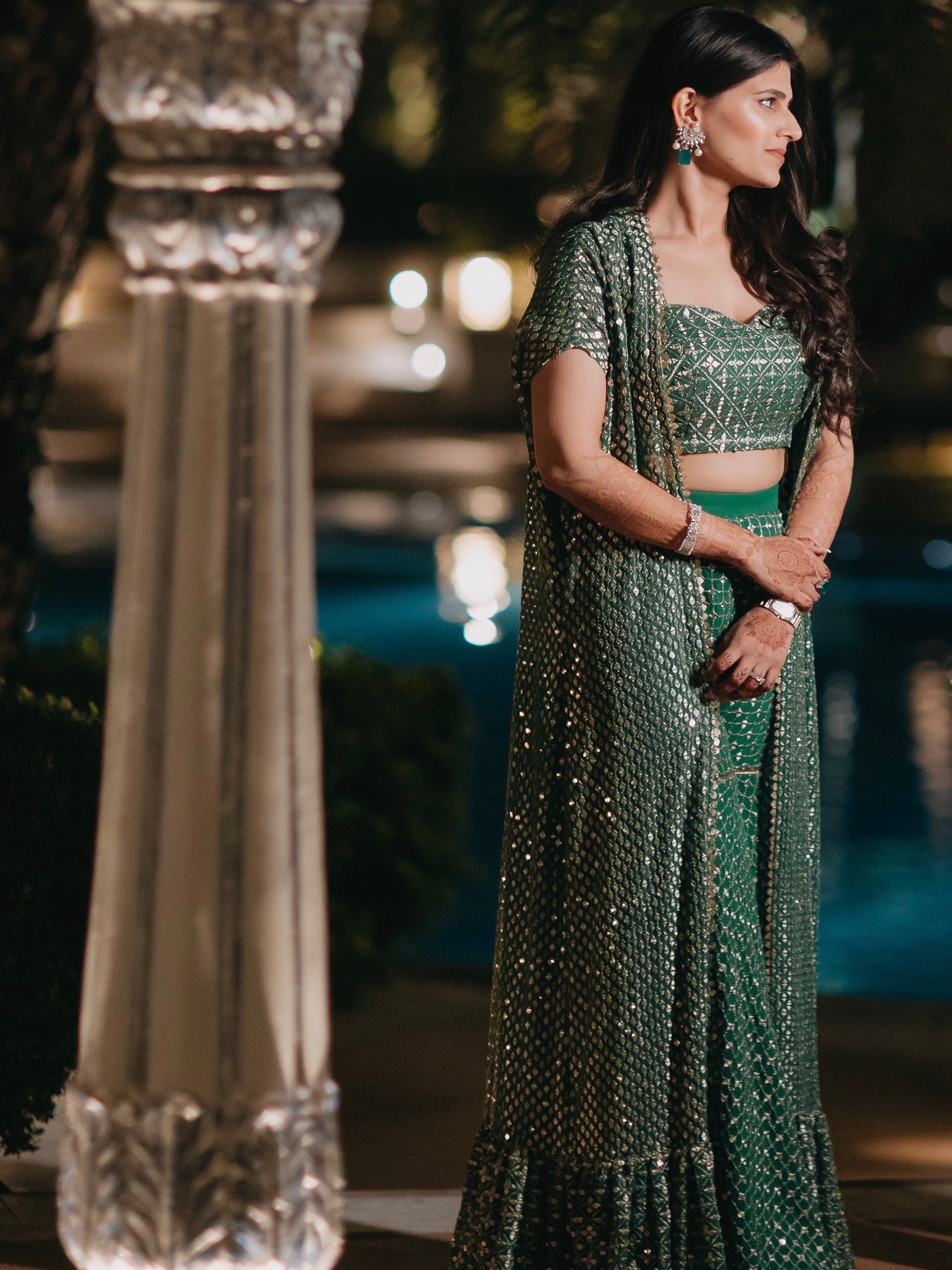GREEN ZARI & SEQUIN 3 PIECE SET