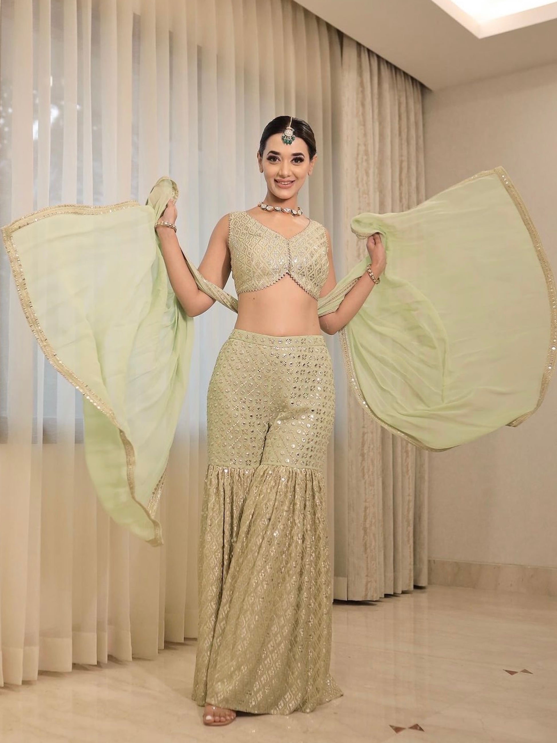 DEEKSHA MISHRA IN GREEN ZARI & SEQUIN GARARA SET