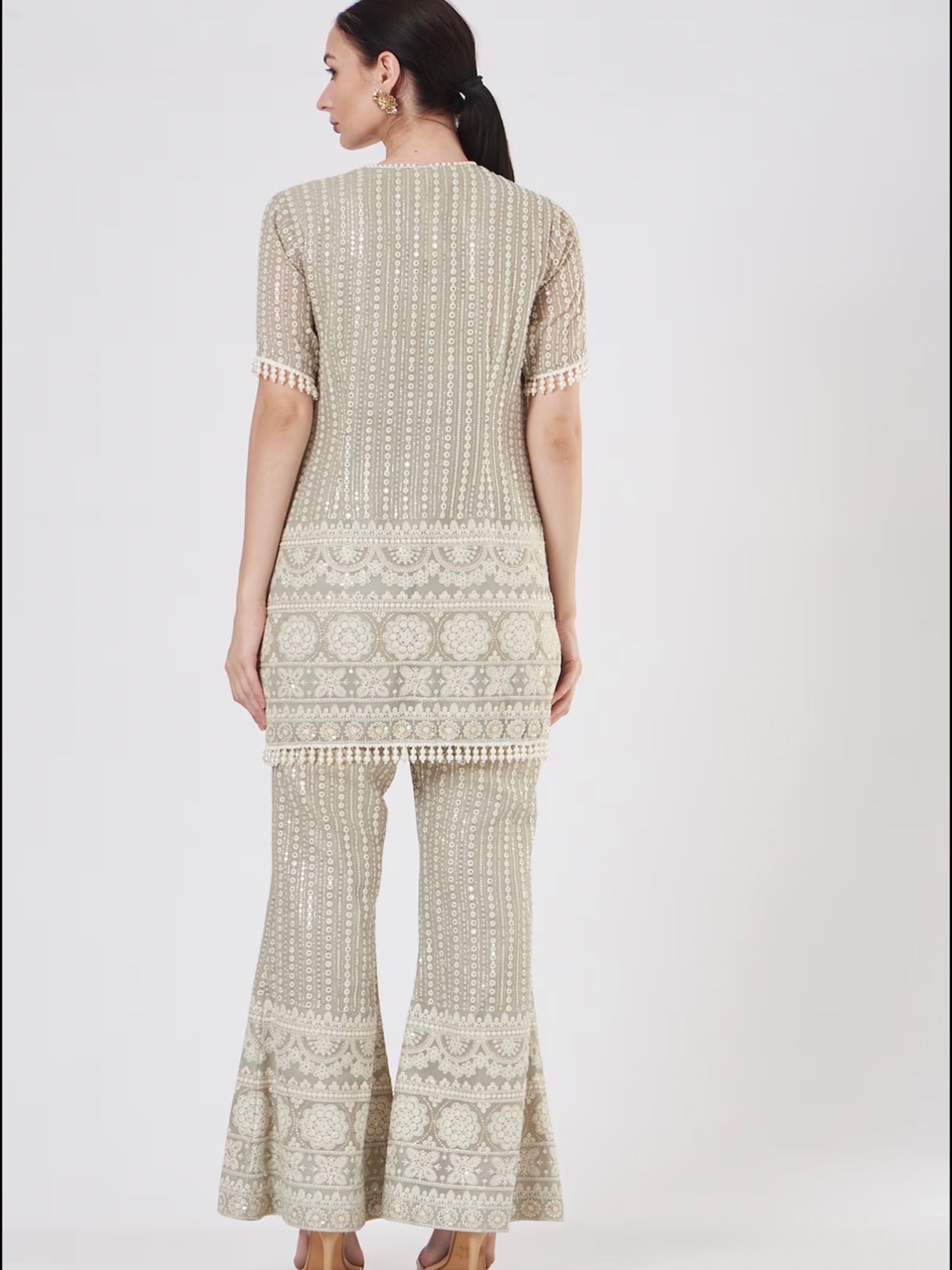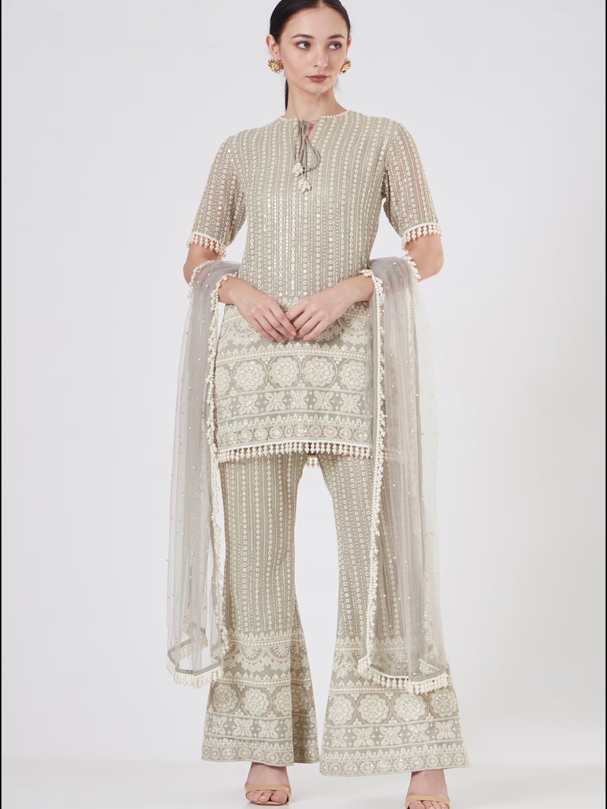 GREY CHIKANKARI COORD SET WITH DUPATTA
