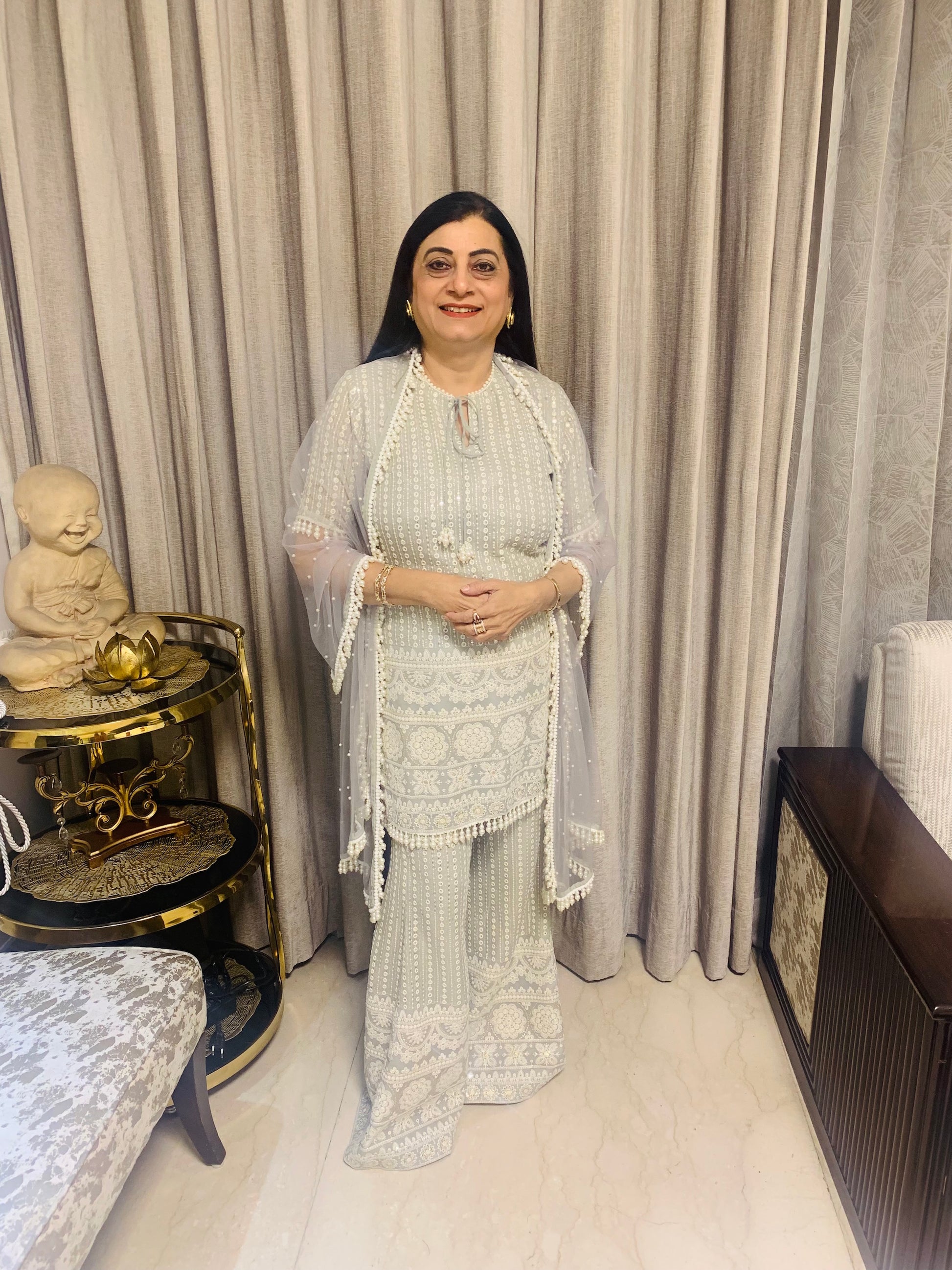 GREY CHIKANKARI COORD SET WITH DUPATTA