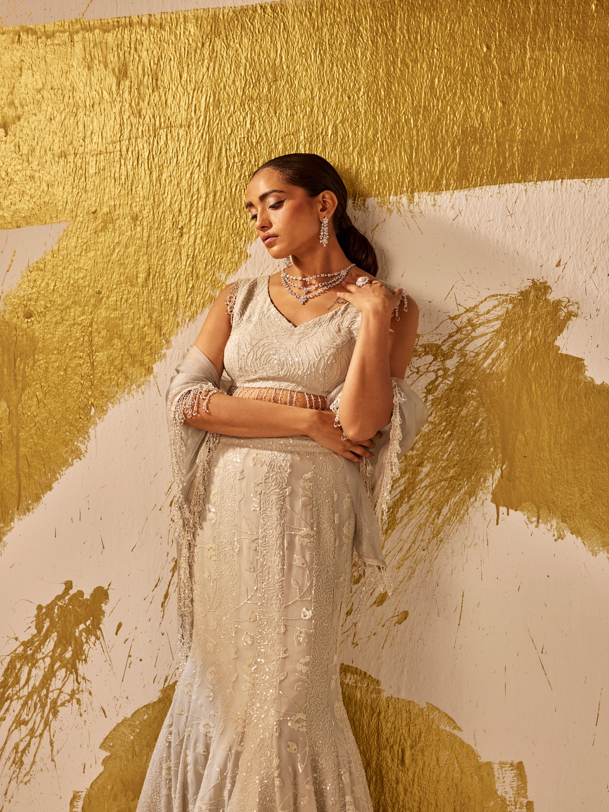 GREY SEQUIN WORK LEHENGA SET