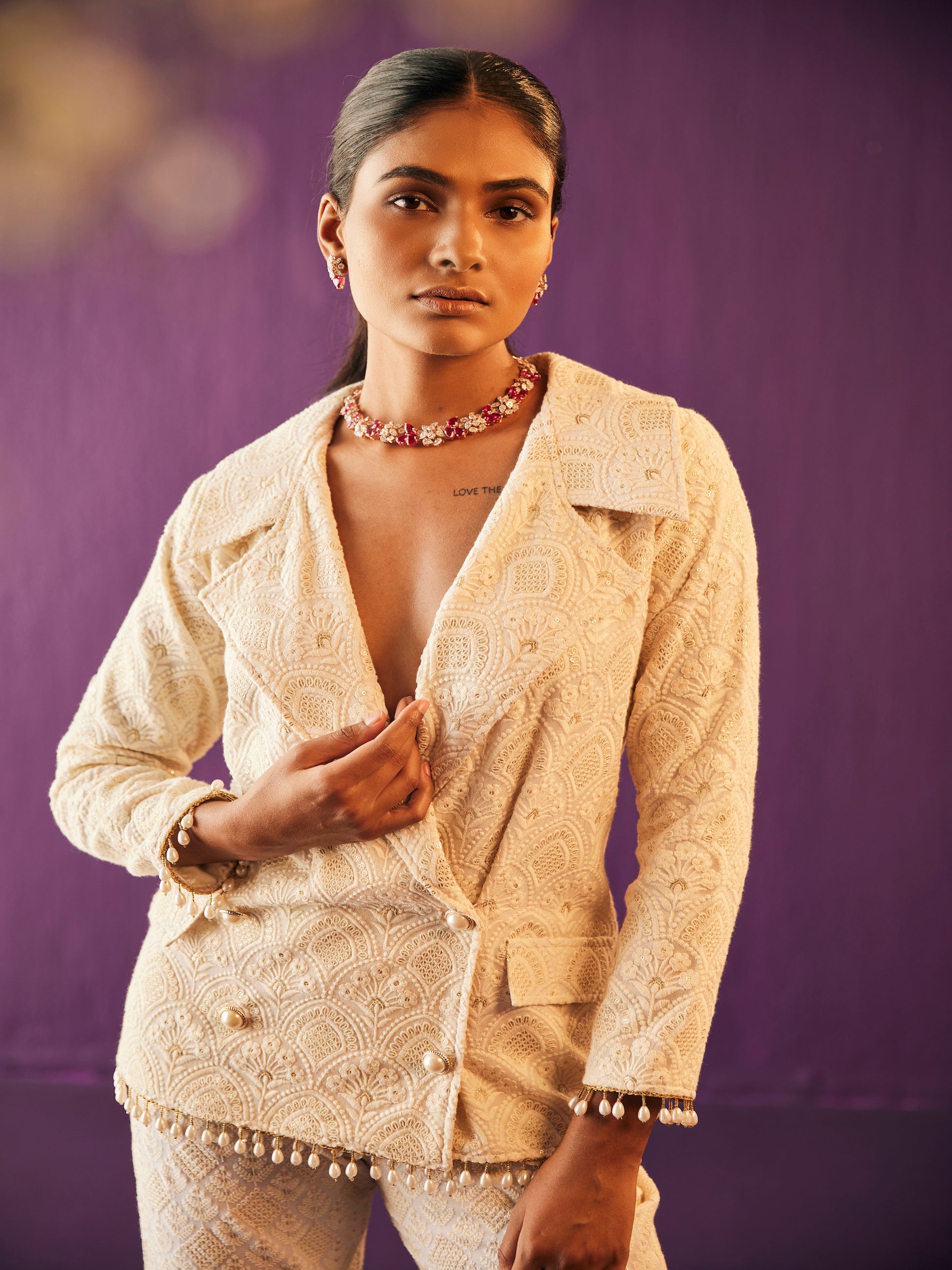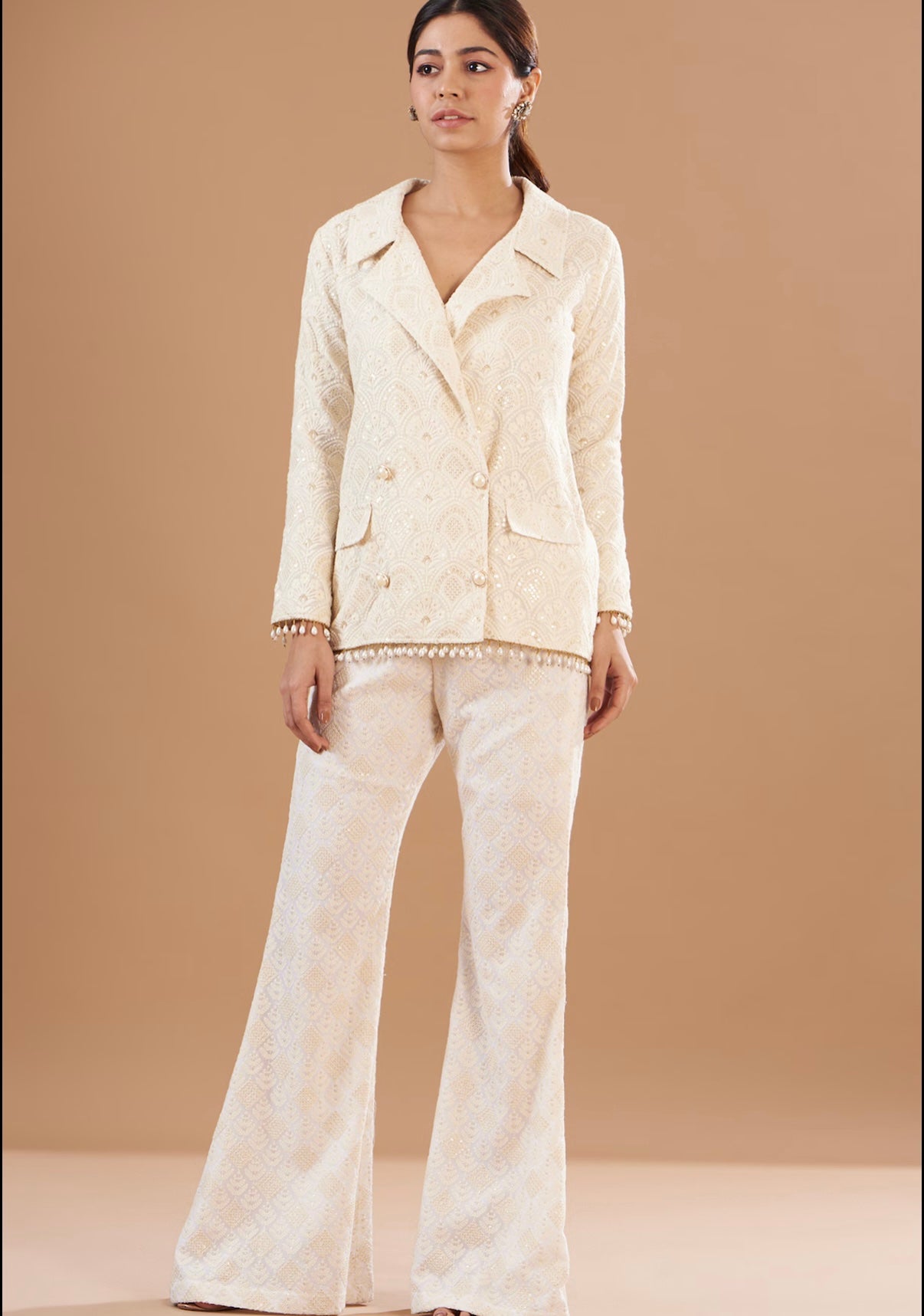 IVORY THREAD WORK DOUBLE BREAST BLAZER SET
