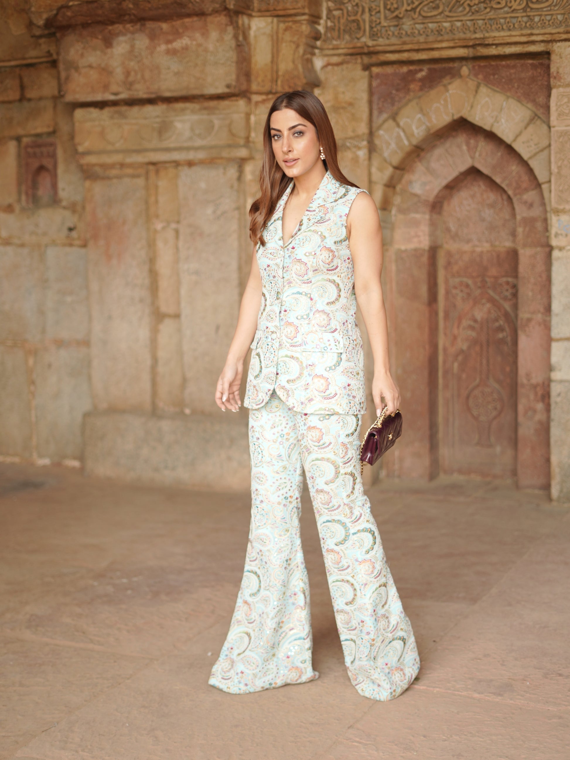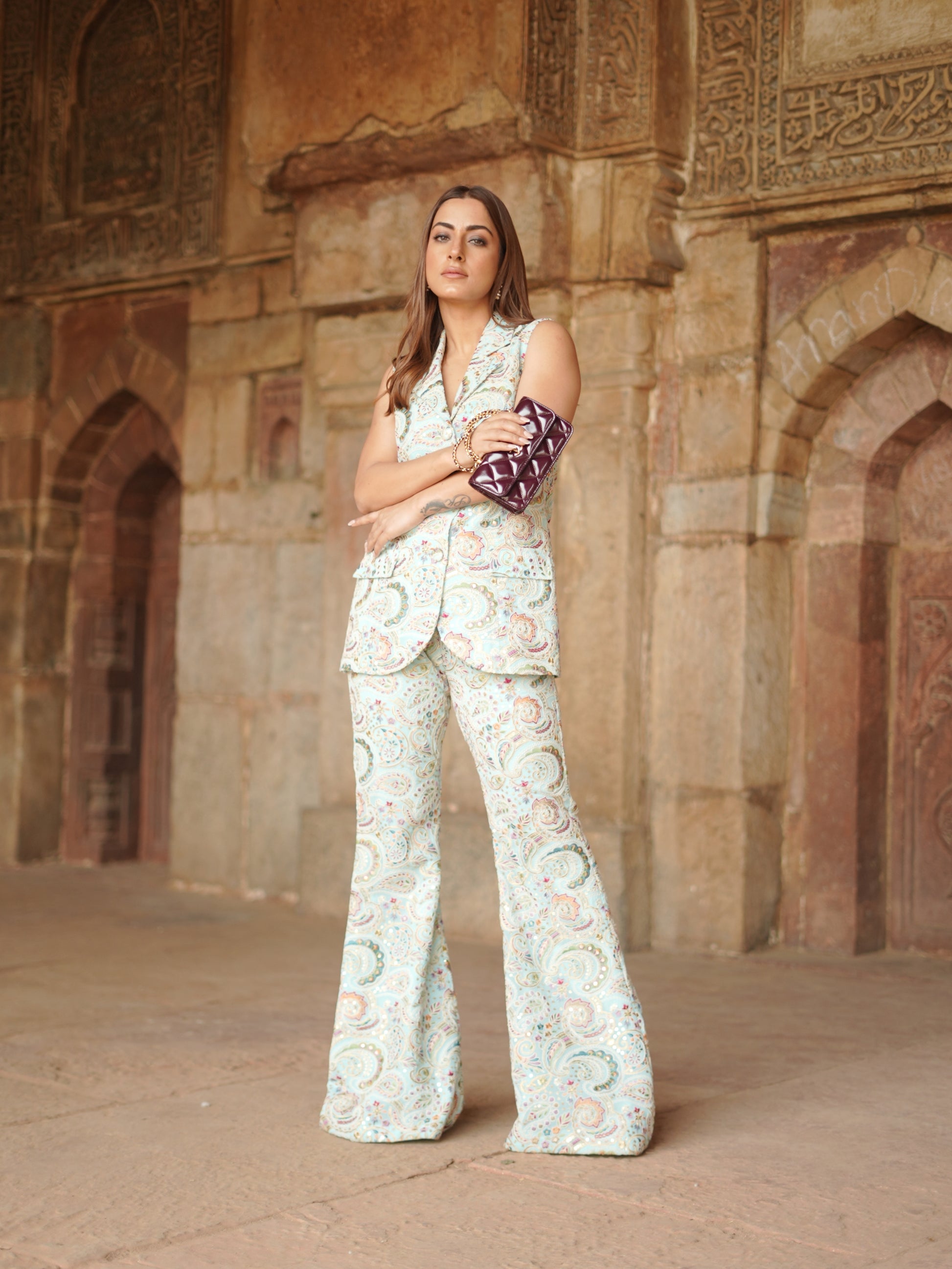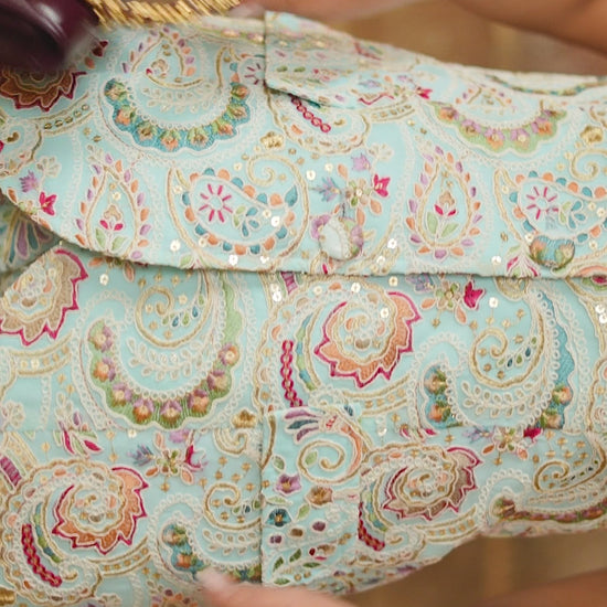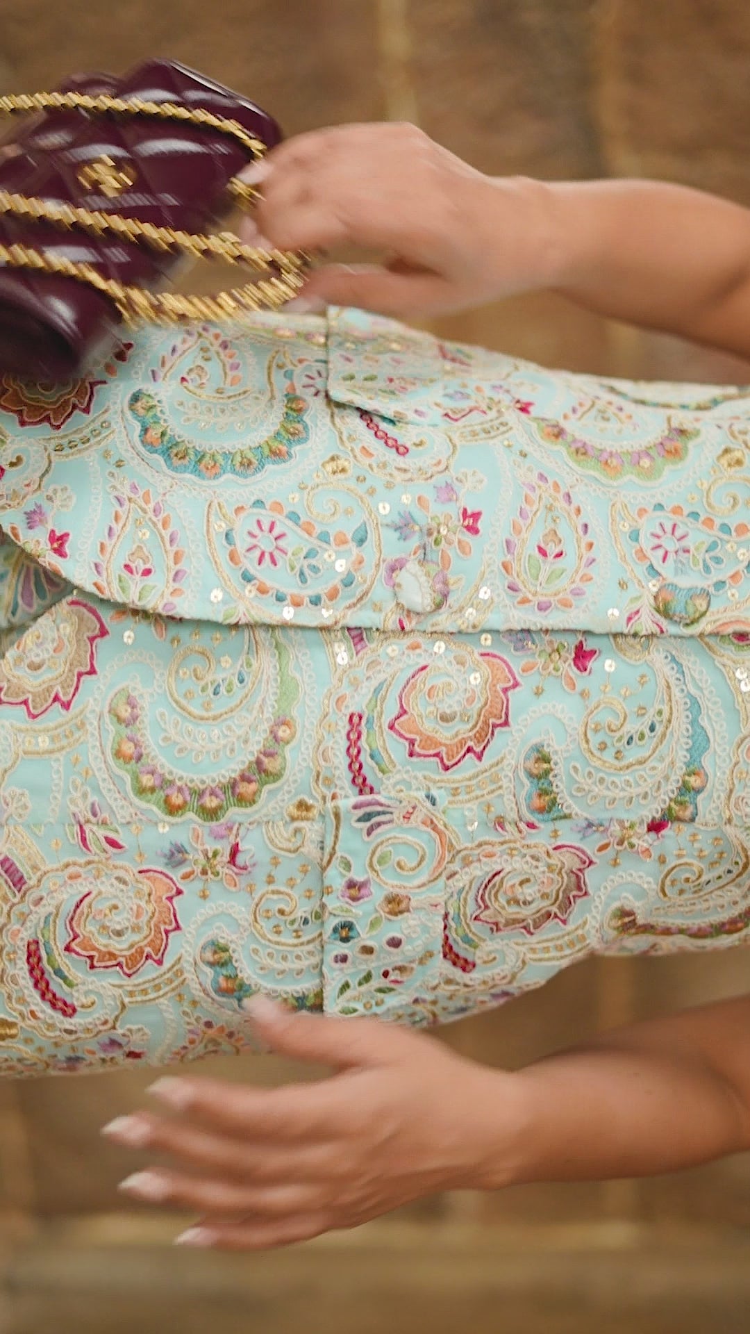 KULVEER IN LIGHT BLUE MULTI COLOR EMBROIDERED JACKET SET