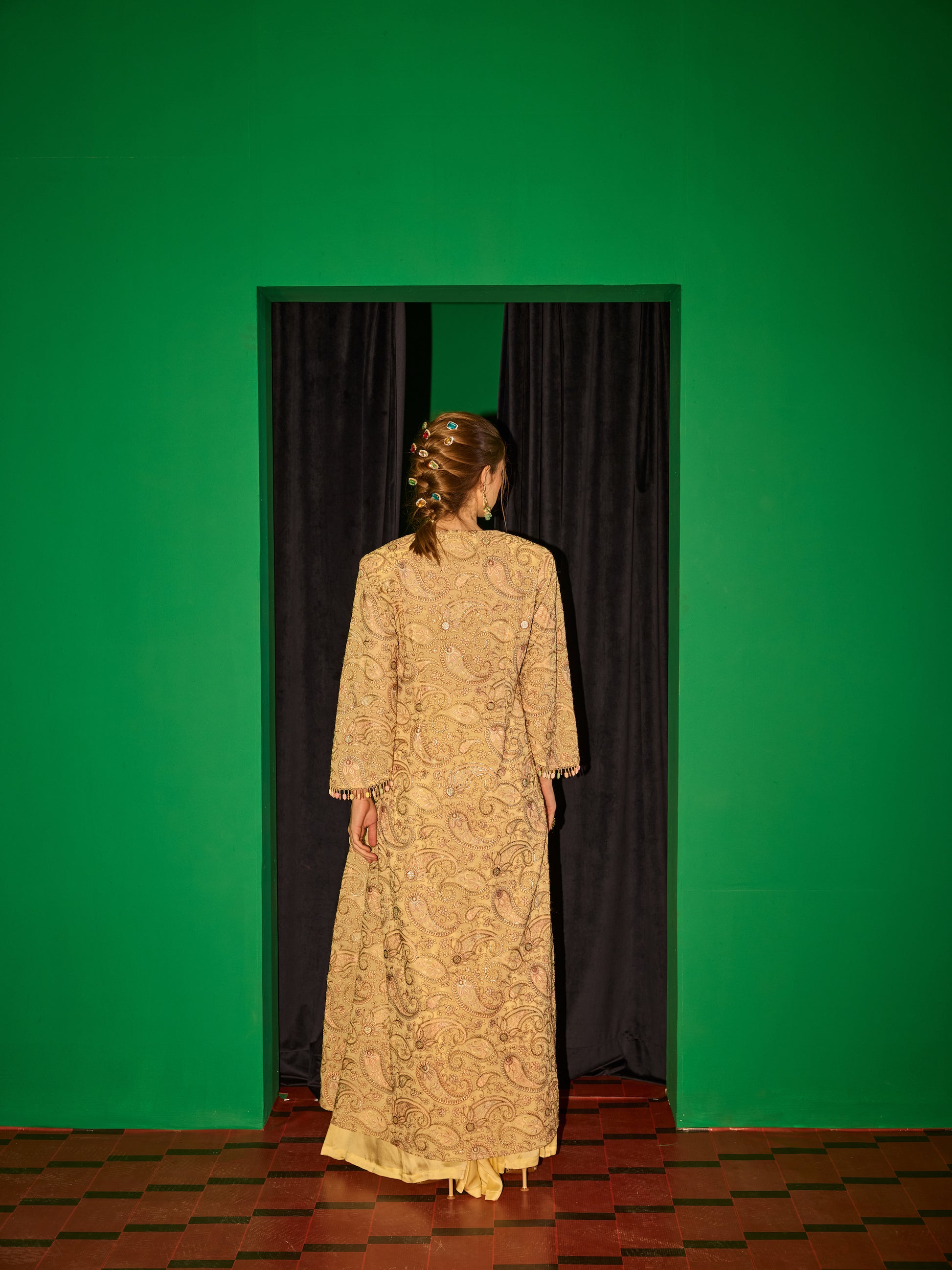 LEMON YELLOW MULTI COLOR EMBROIDERED 3 PIECE SET