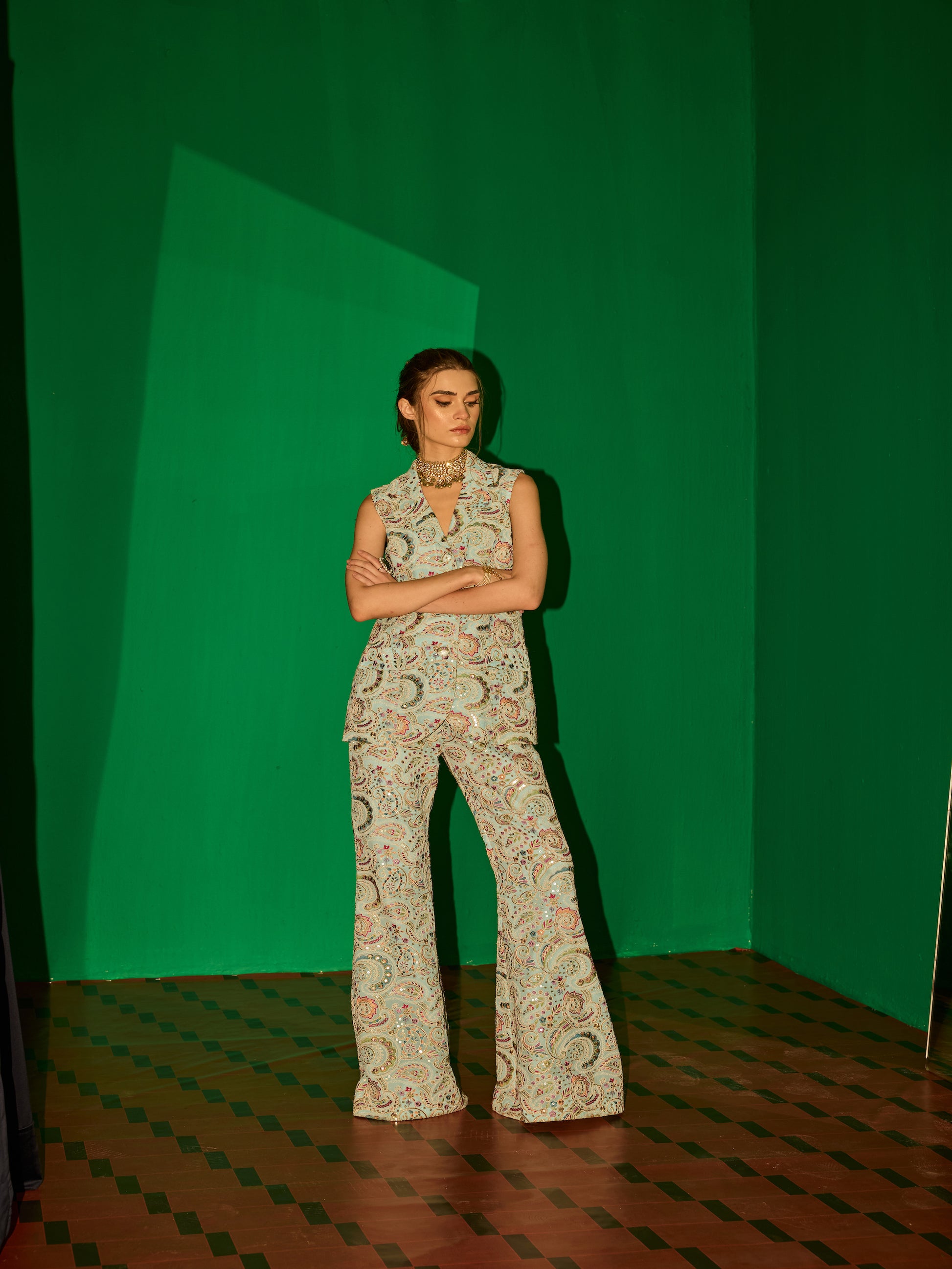 LIGHT BLUE MULTI COLOR EMBROIDERED JACKET SET