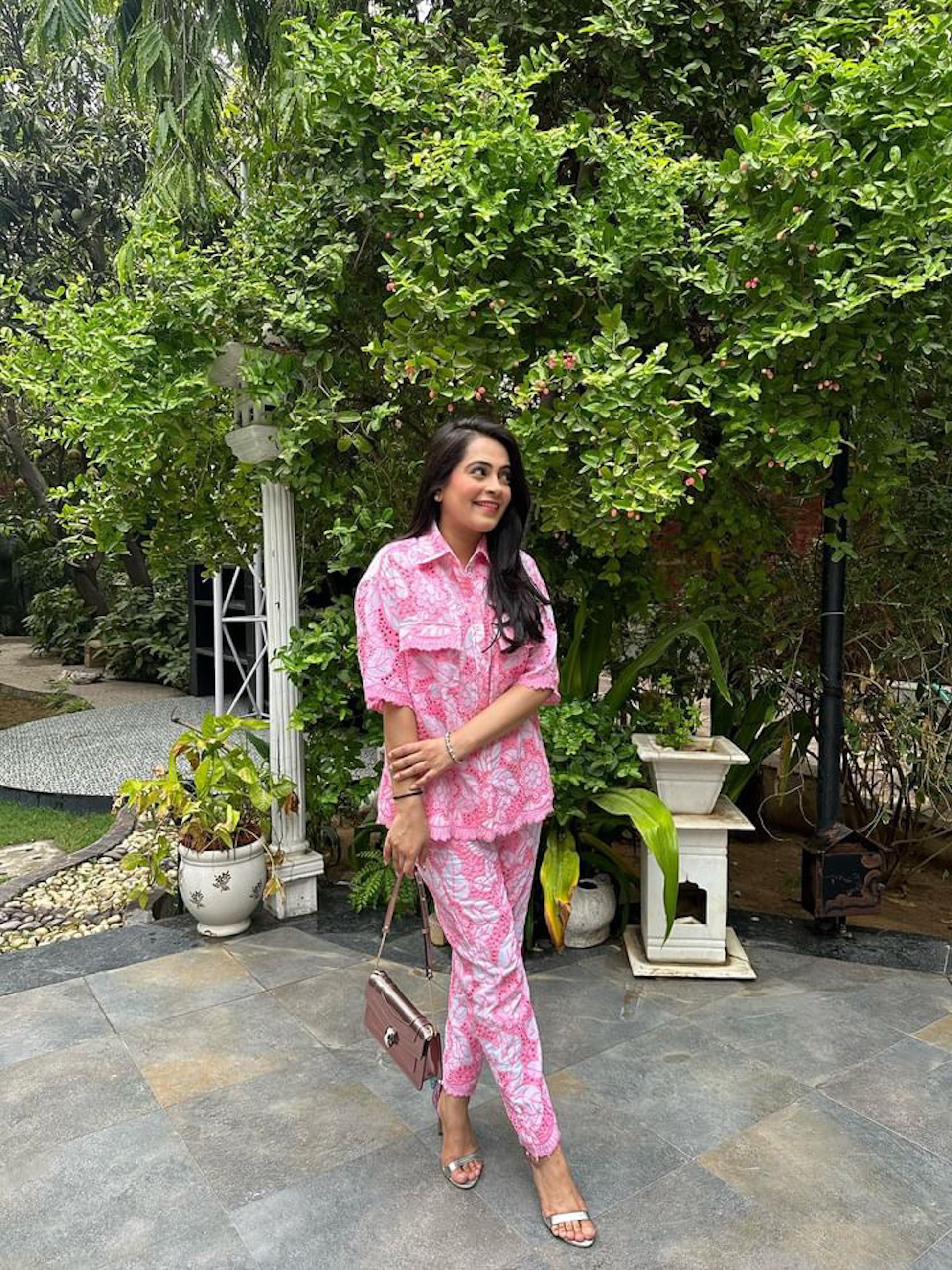 SHRADHA AJMANI IN PINK COTTON COORD SET