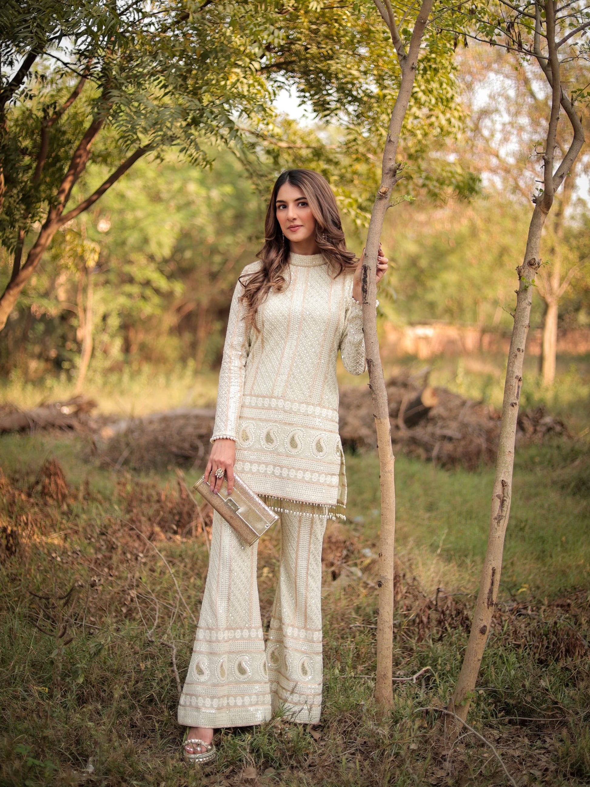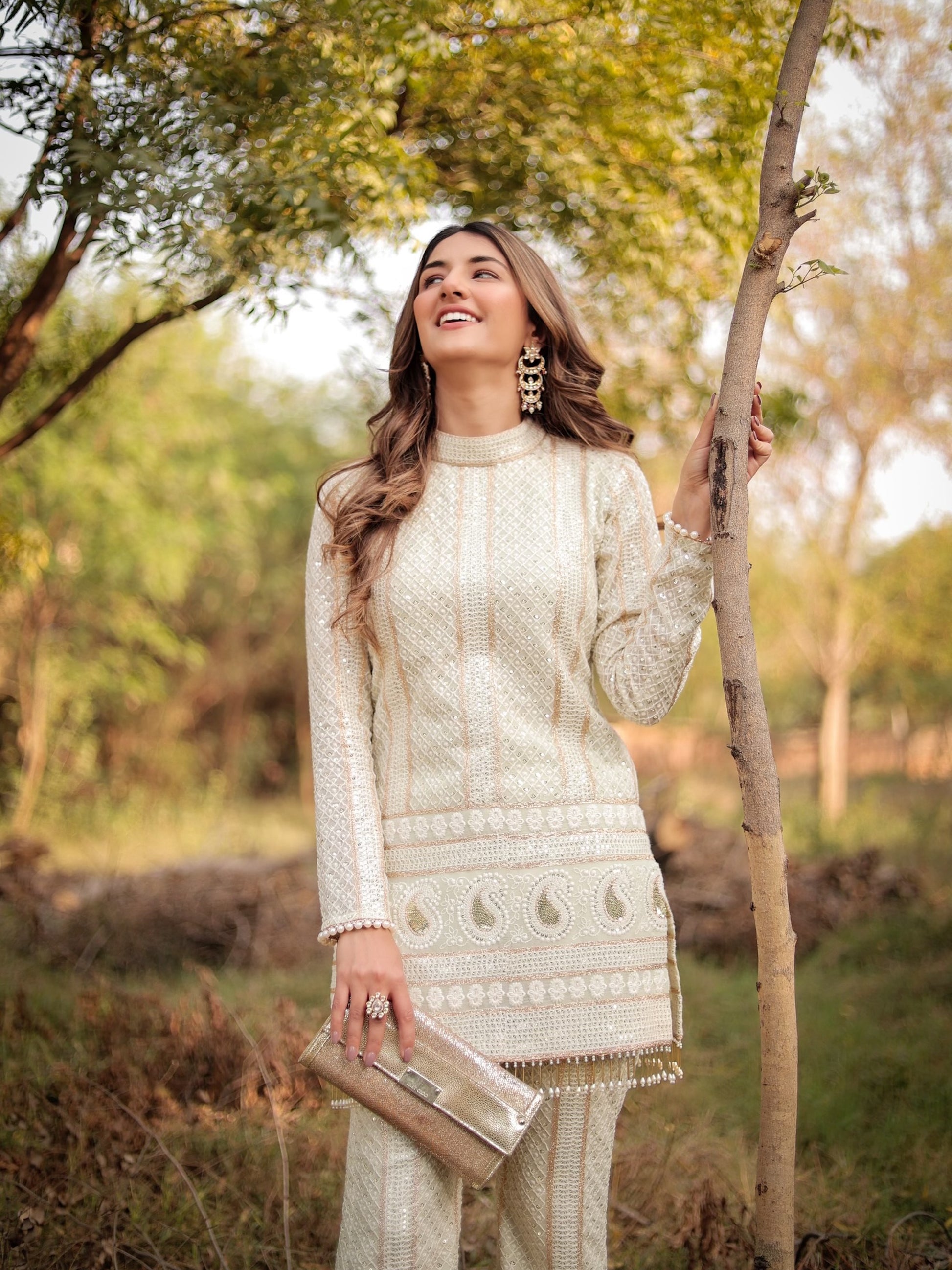 MEHER TALUJA IN MINT GREEN CHIKANKARI COORD SET