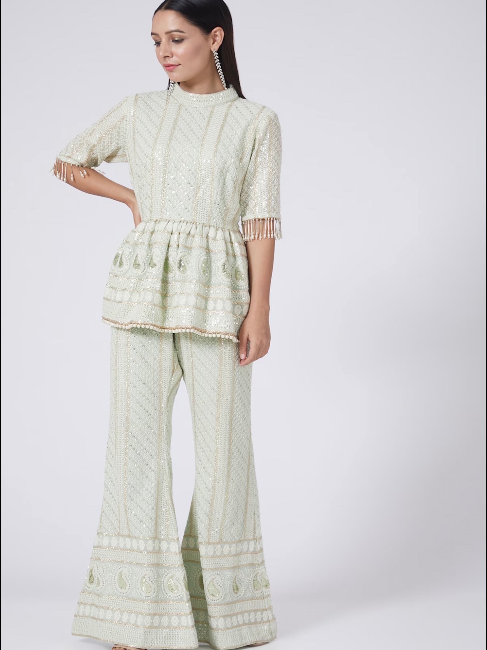 MINT GREEN CHIKANKARI PEPLUM COORD SET