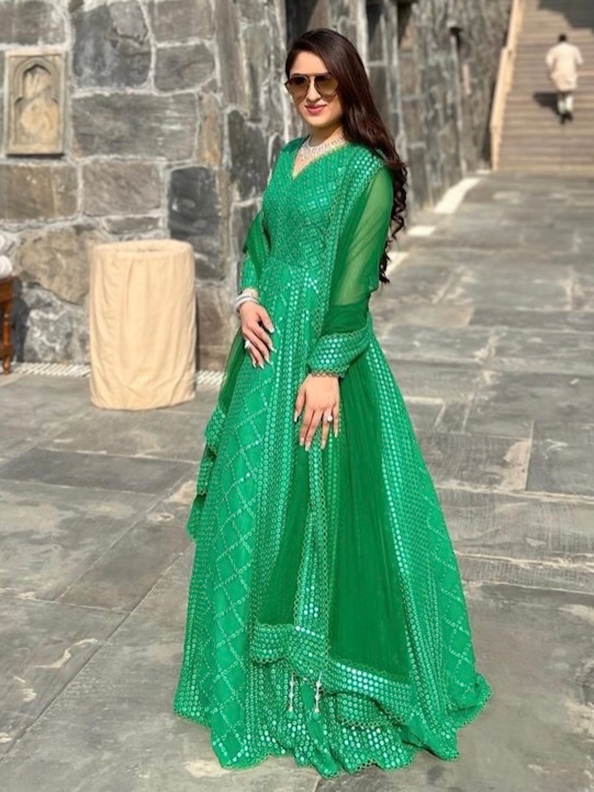 NIKITA VASDEV IN GREEN MIRROR WORK ANARKALI