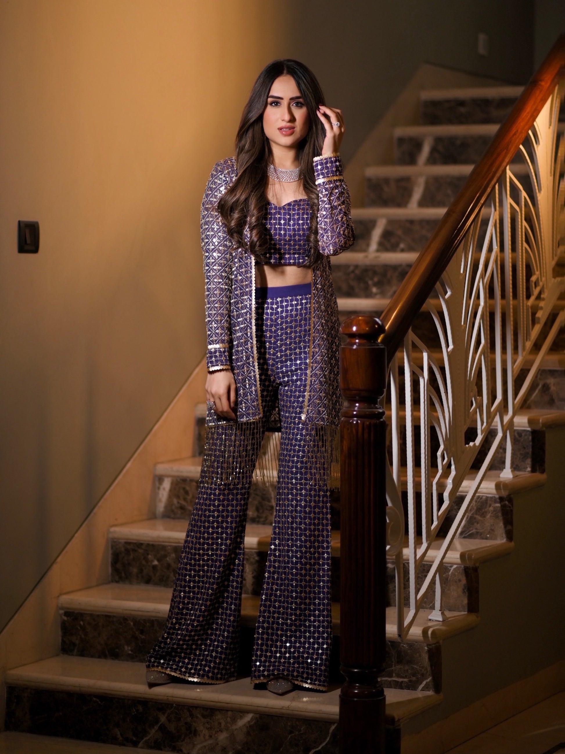 NIKITA VASDEV IN PURPLE ZARI & SEQUIN 3 PIECE SET
