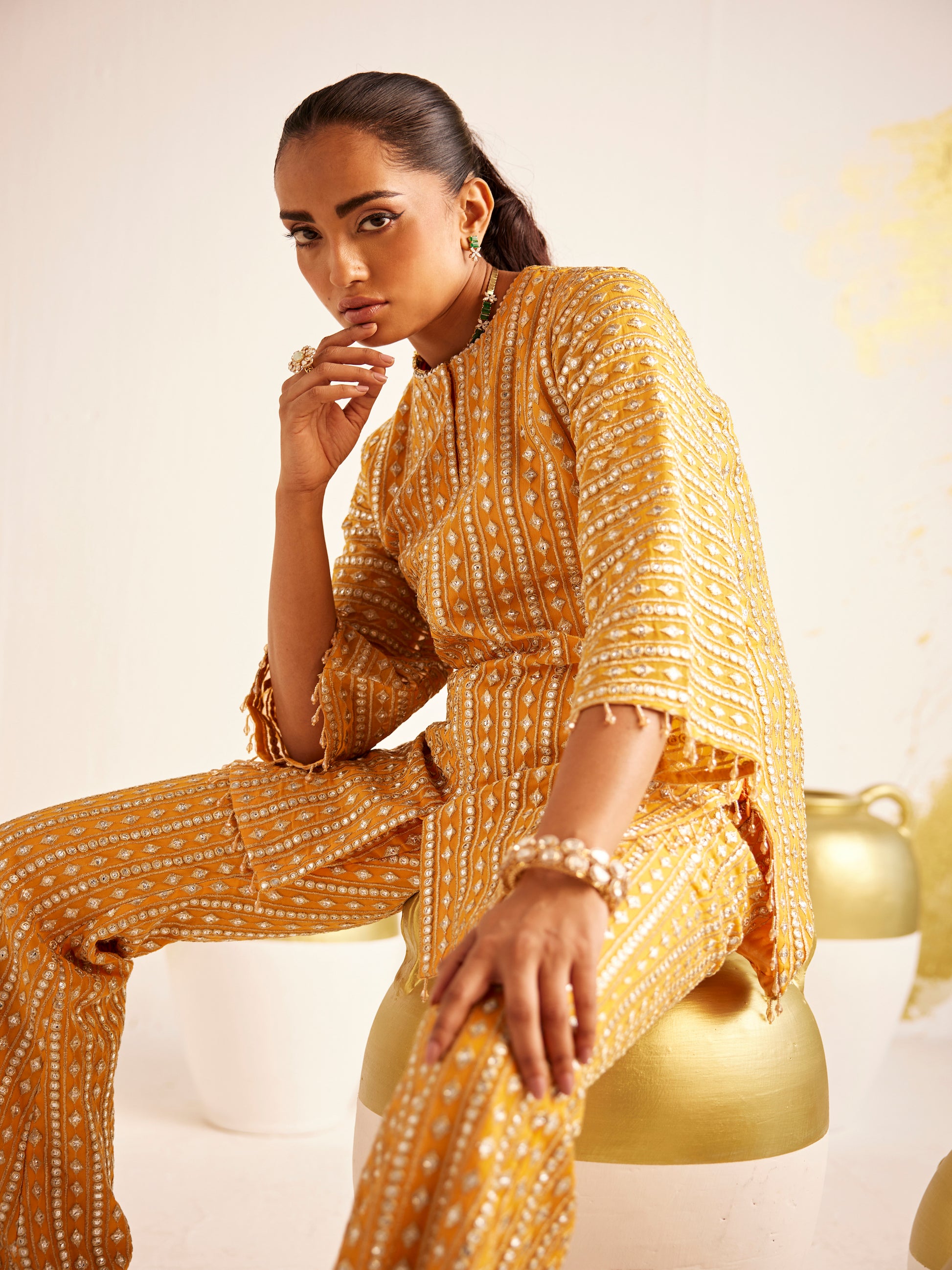 Georgette shirt, satin pants