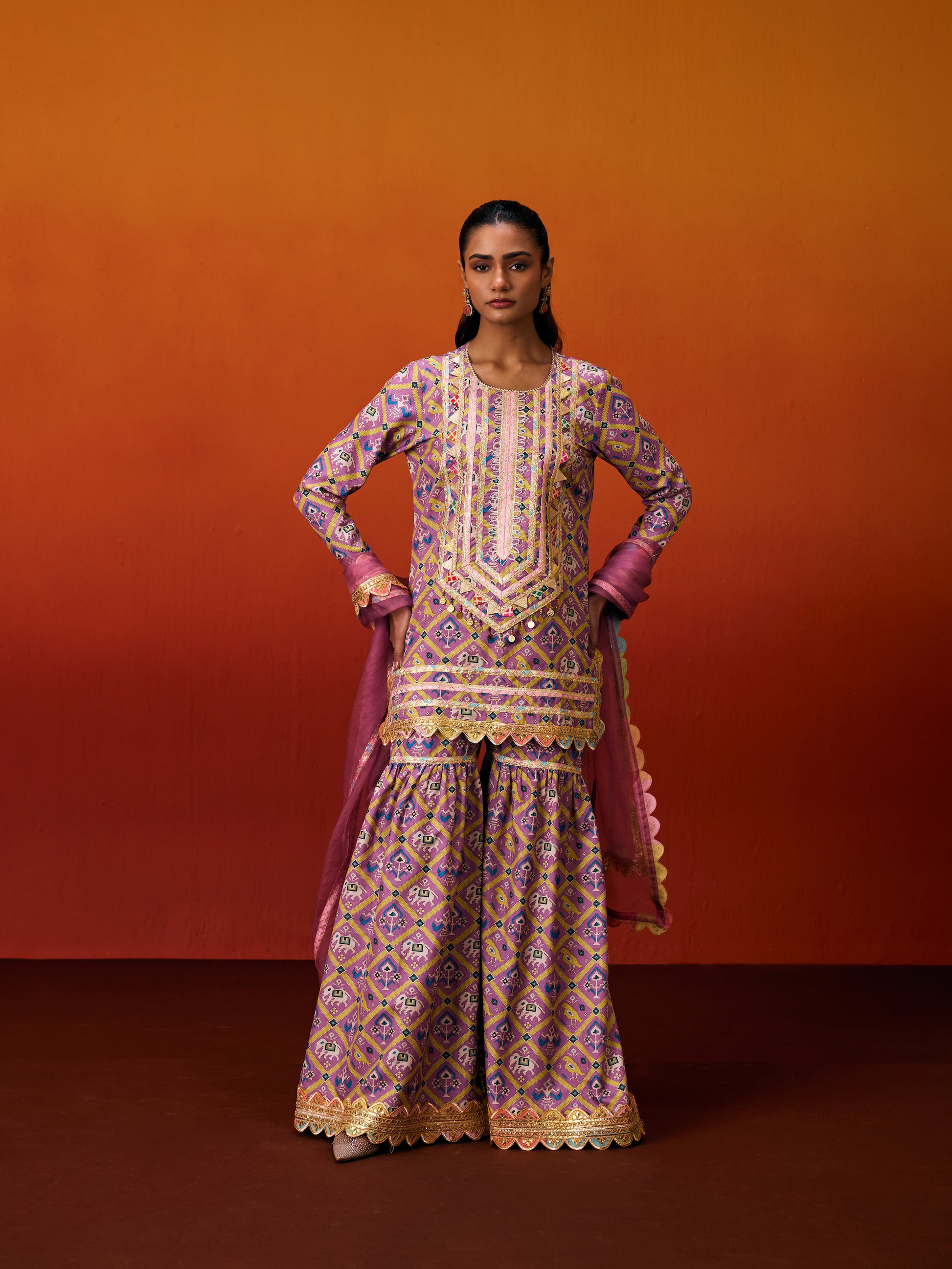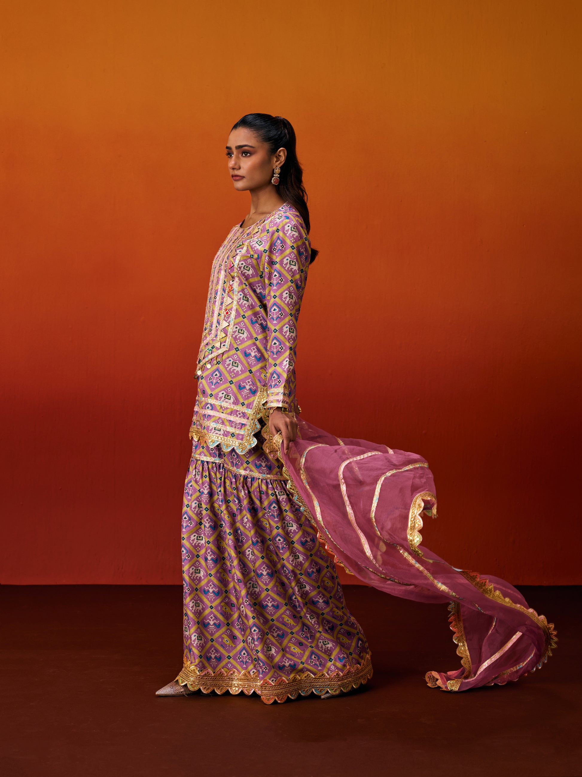 Embroidery : Patola print with Gota patti embroidery