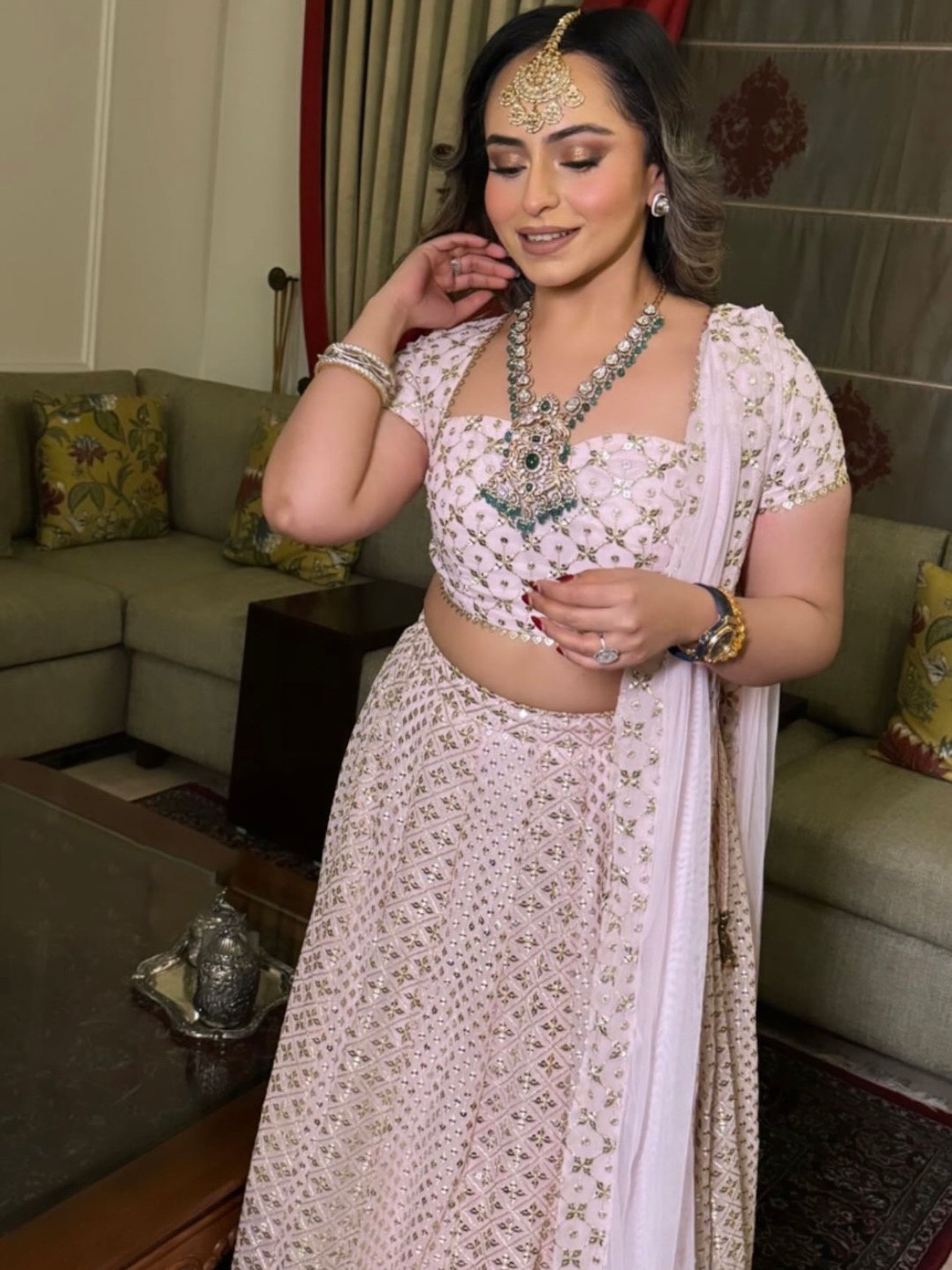 PINK ZARI & SEQUIN LEHENGA SET