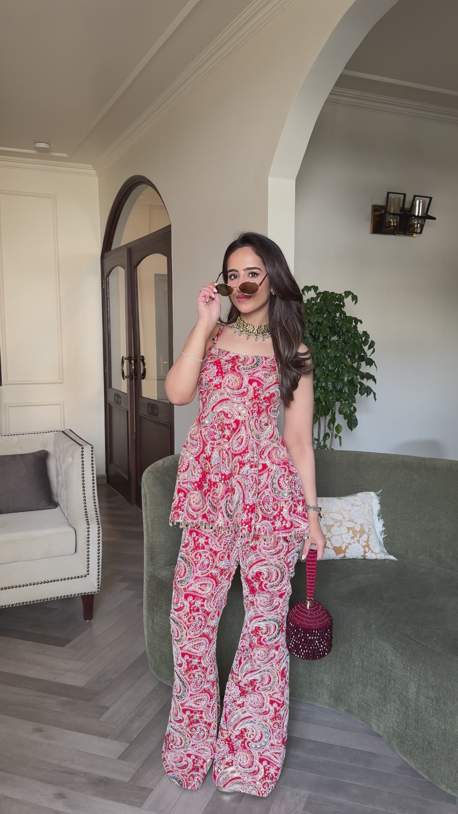 SMRIDHI OBEROI IN RED MULTI COLOR EMBROIDERED PEPLUM SET