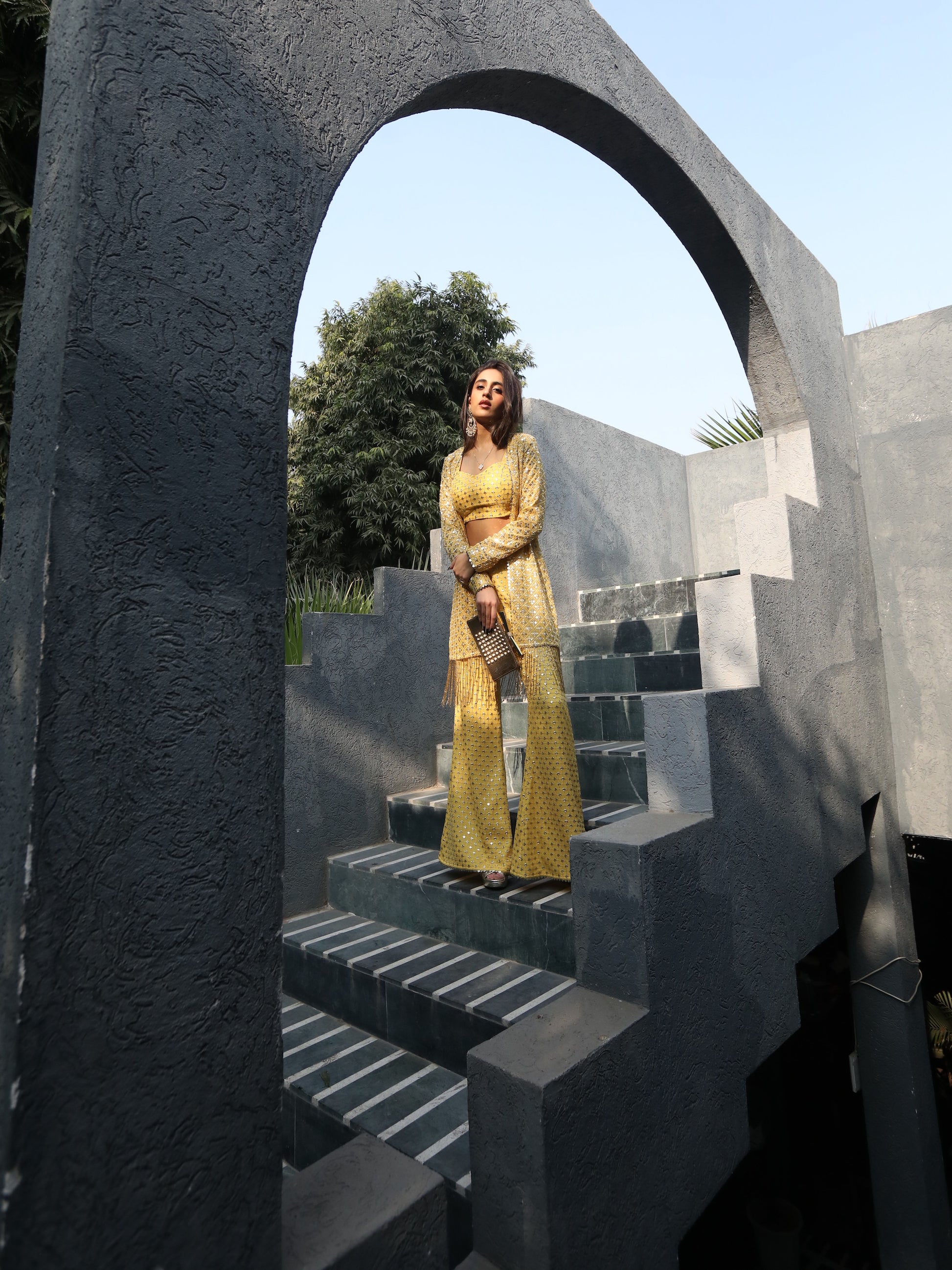 TANYA TULI IN YELLOW ZARI & SEQUIN 3 PIECE SET