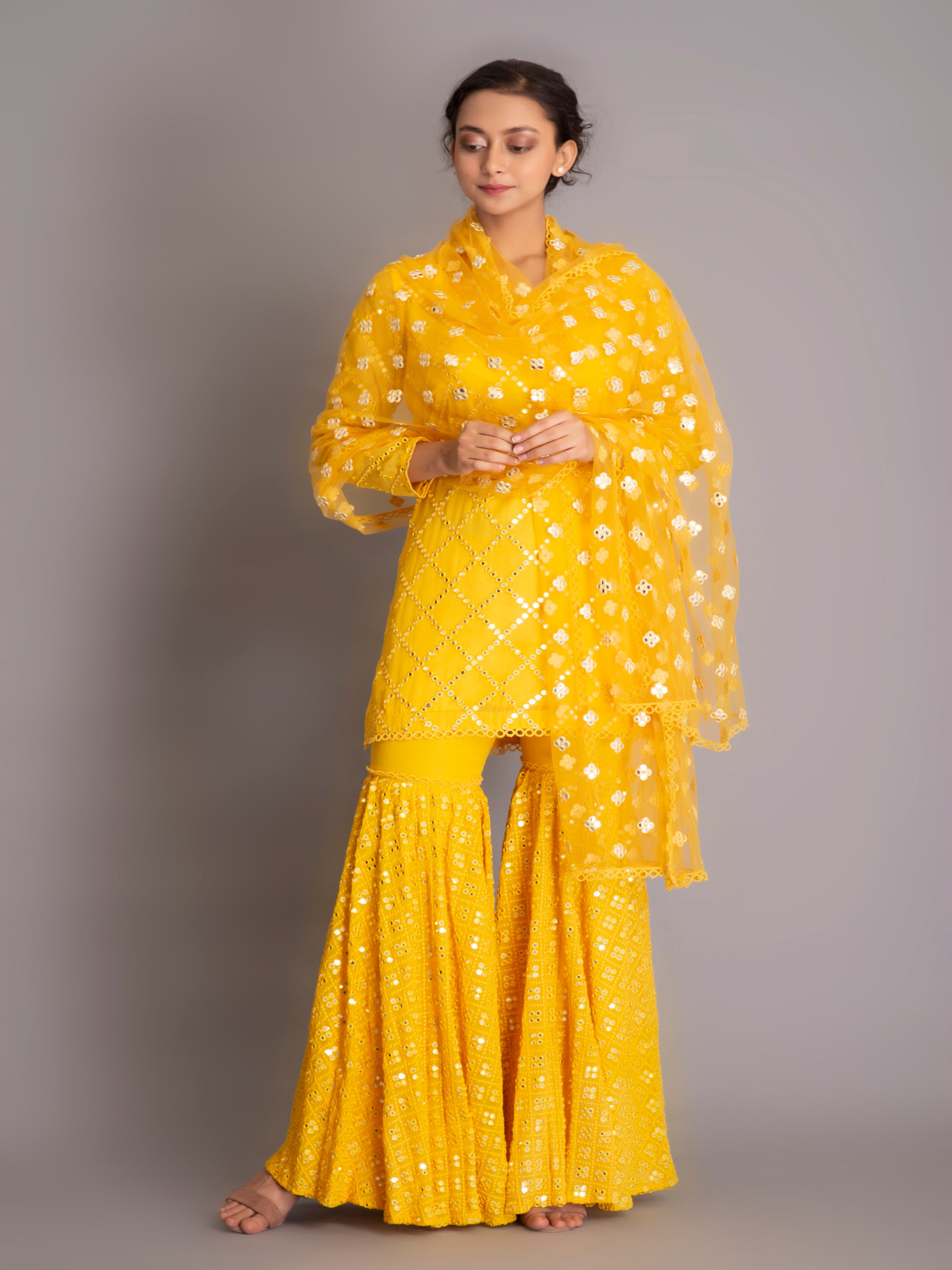 YELLOW MIRROR WORK GARARA SET