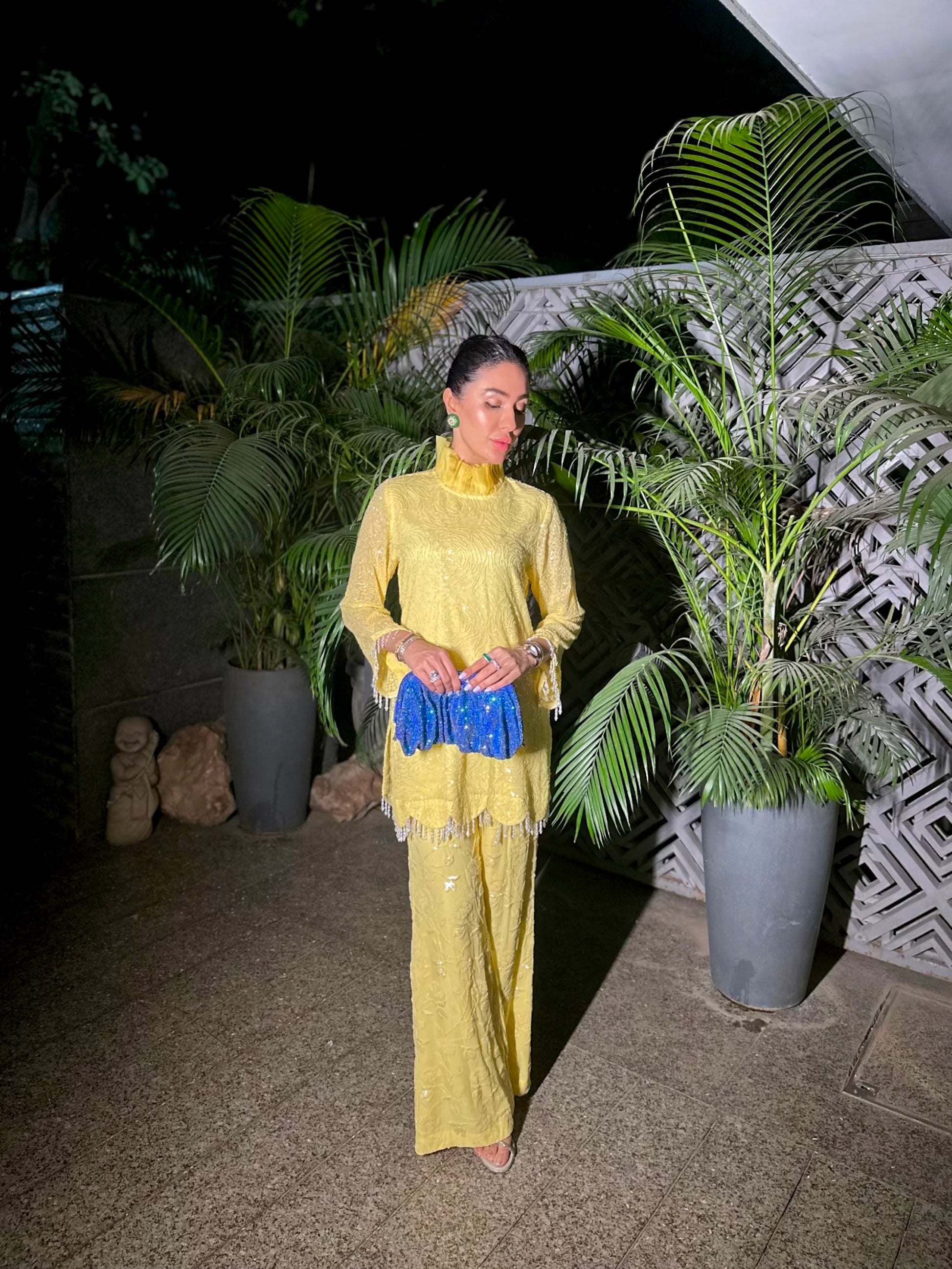 RESHMA MALHOTRA IN YELLOW SEQUIN WORK COORD SET