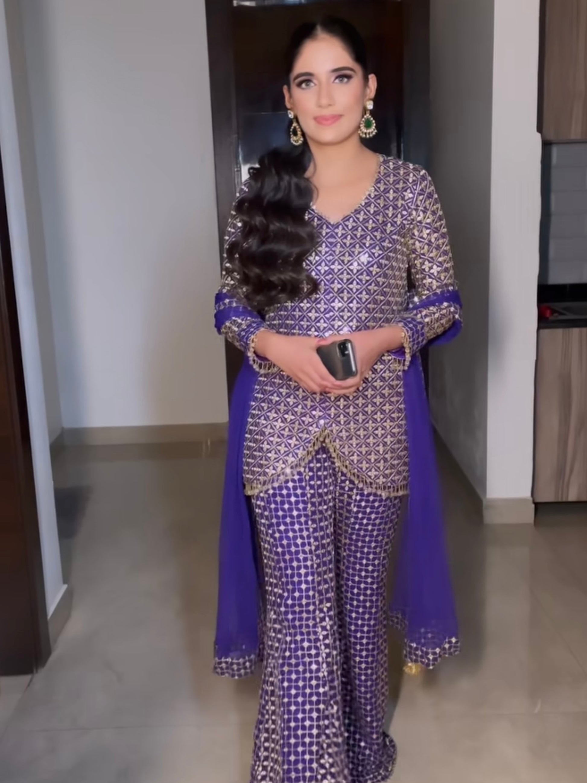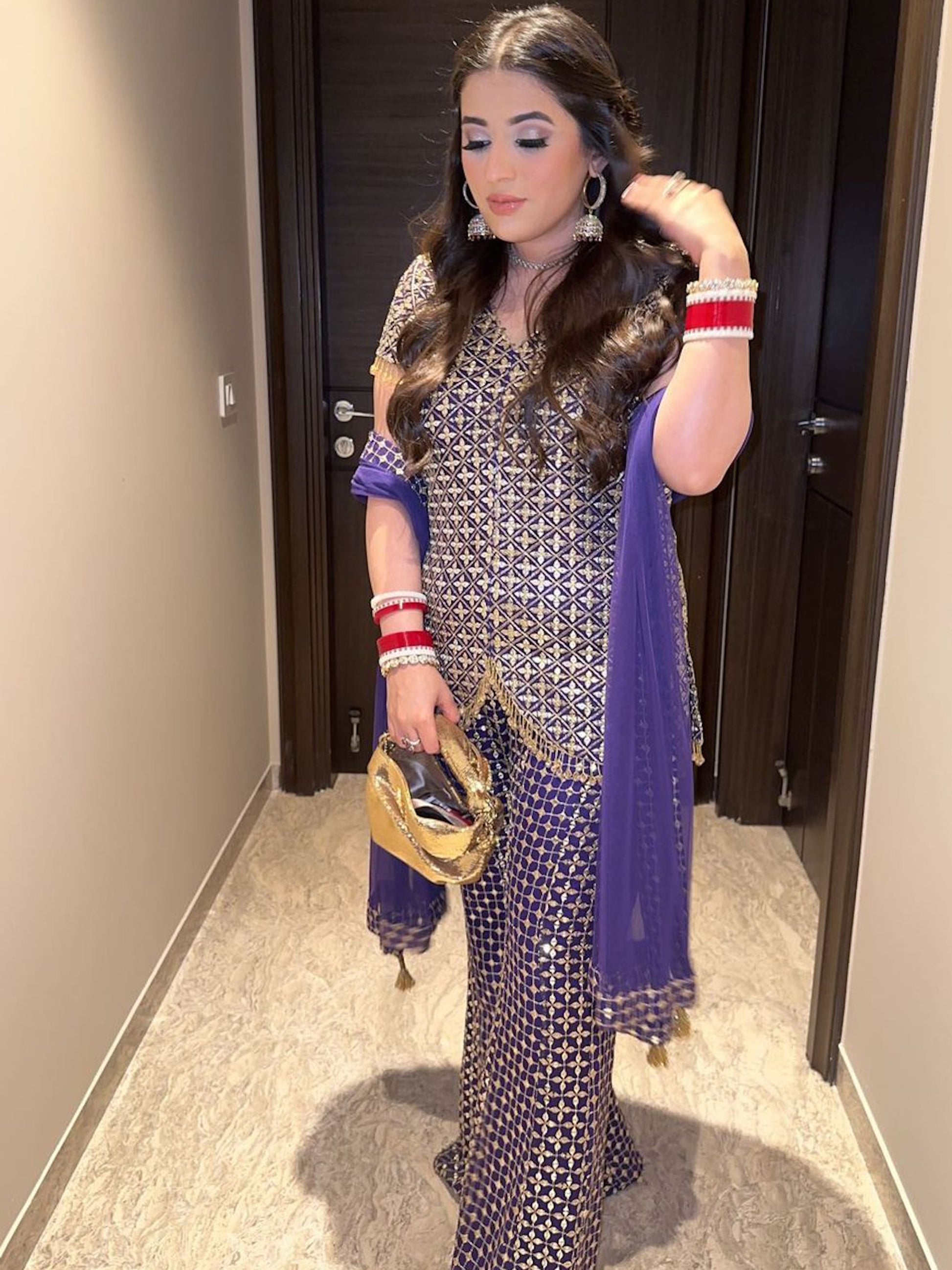 BLUEISH PURPLE ZARI & SEQUIN COORD SET
