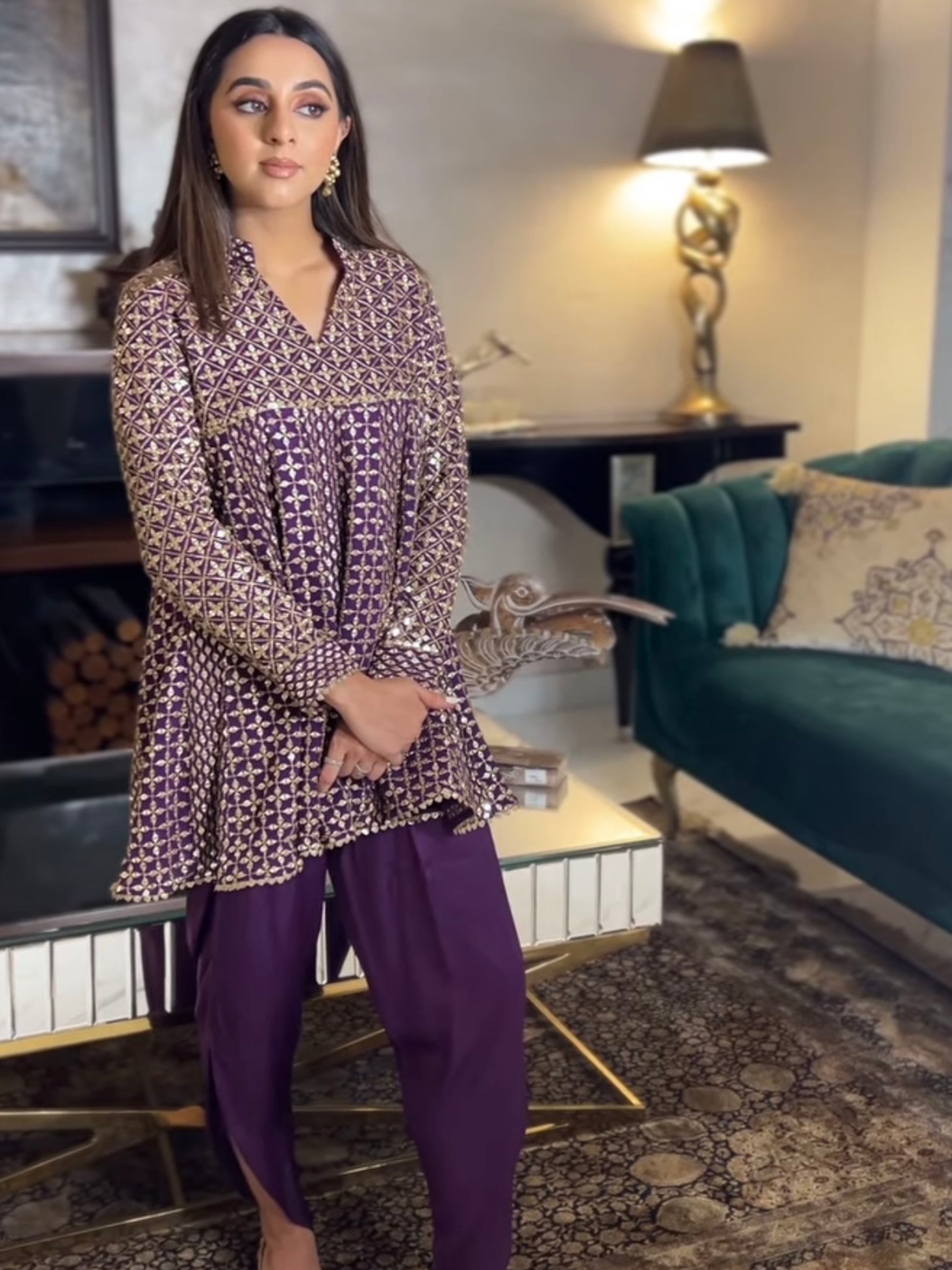 PURPLE ZARI & SEQUIN DHOTI SET